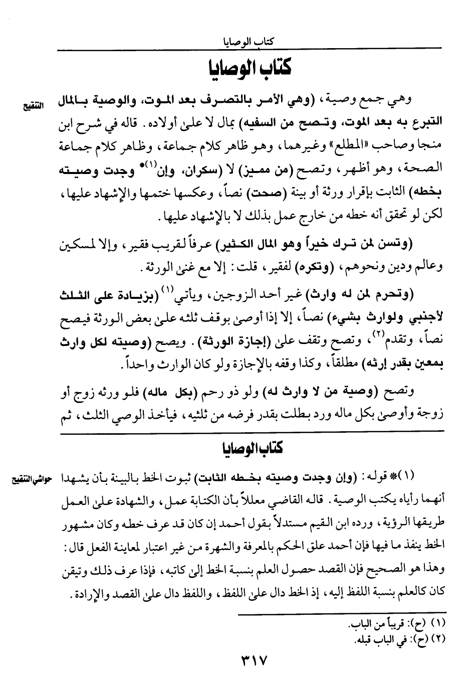 (¬١) * قوله: (وإن وجدت وصيته بخطه الثابت) ثبوت الخط بالبينة بأن يشهدا أنهما رأياه يكتب الوصية. قاله القاضي معللًا بأن الكتابة عمل، والشهادة على العمل طريقها الرؤية، ورده ابن القيم مستدلًا بقول أحمد إن كان قد عرف خطه وكان مشهور الخط ينفذ ما فيها فإن أحمد علق الحكم بالمعرفة والشهرة من غير اعتبار لمعاينة الفعل قال: وهذا هو الصحيح فإن القصد حصول العلم بنسبة الخط إلى كاتبه، فإذا عرف ذلك وتيقن كان كالعلم بنسبة اللفظ إليه، إذ الخط دال على اللفظ، واللفظ دال على القصد والإِرادة.