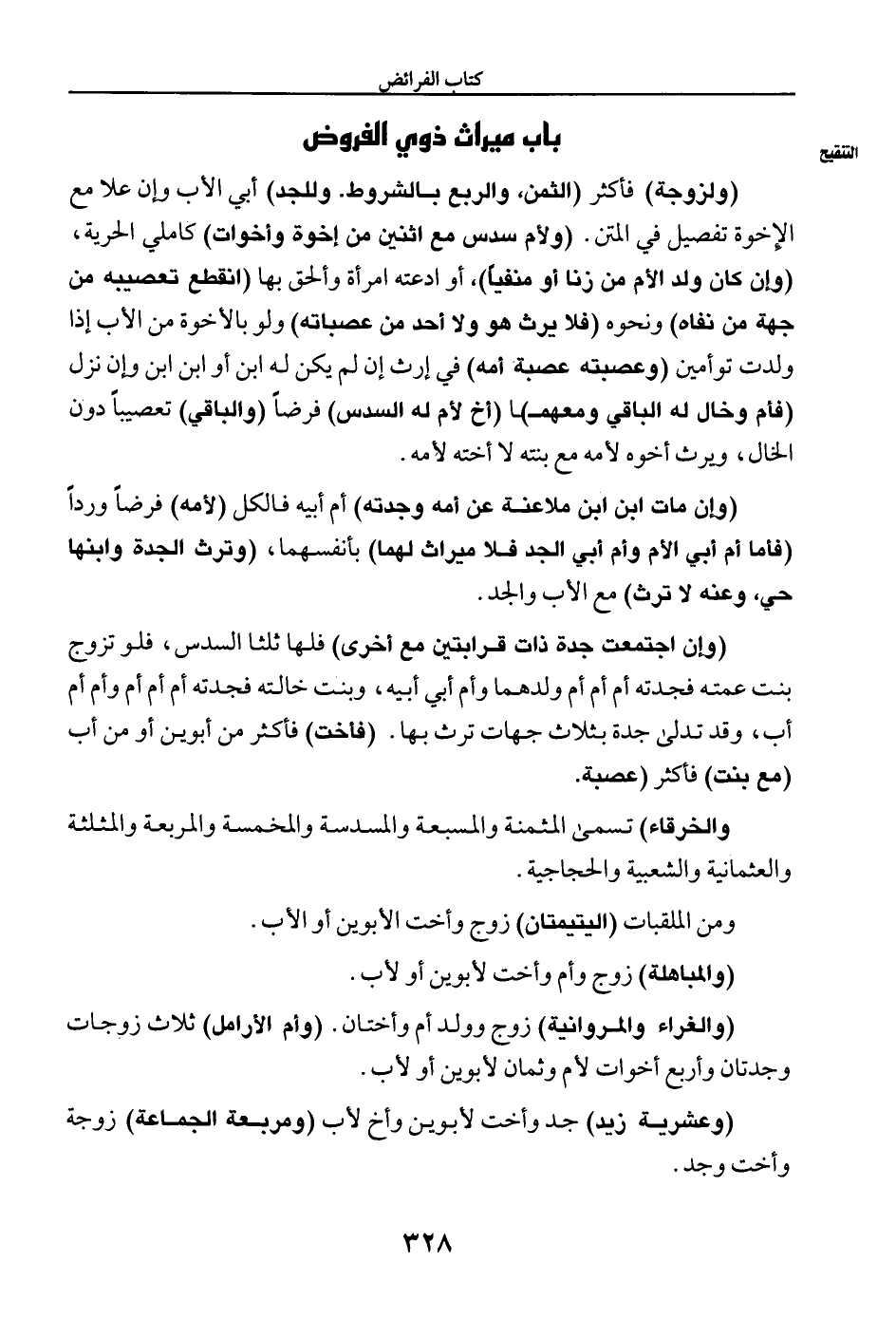 (وعشرية زيد) جد وأخت لأبوين وأخ لأب (ومربعة الجماعة) زوجة وأخت وجد.