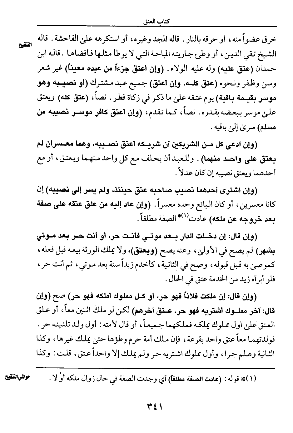 (¬١)* قوله: (عادت الصفة مطلقًا) أي وجدت الصفة في حال زوال ملكه أوْ لا.