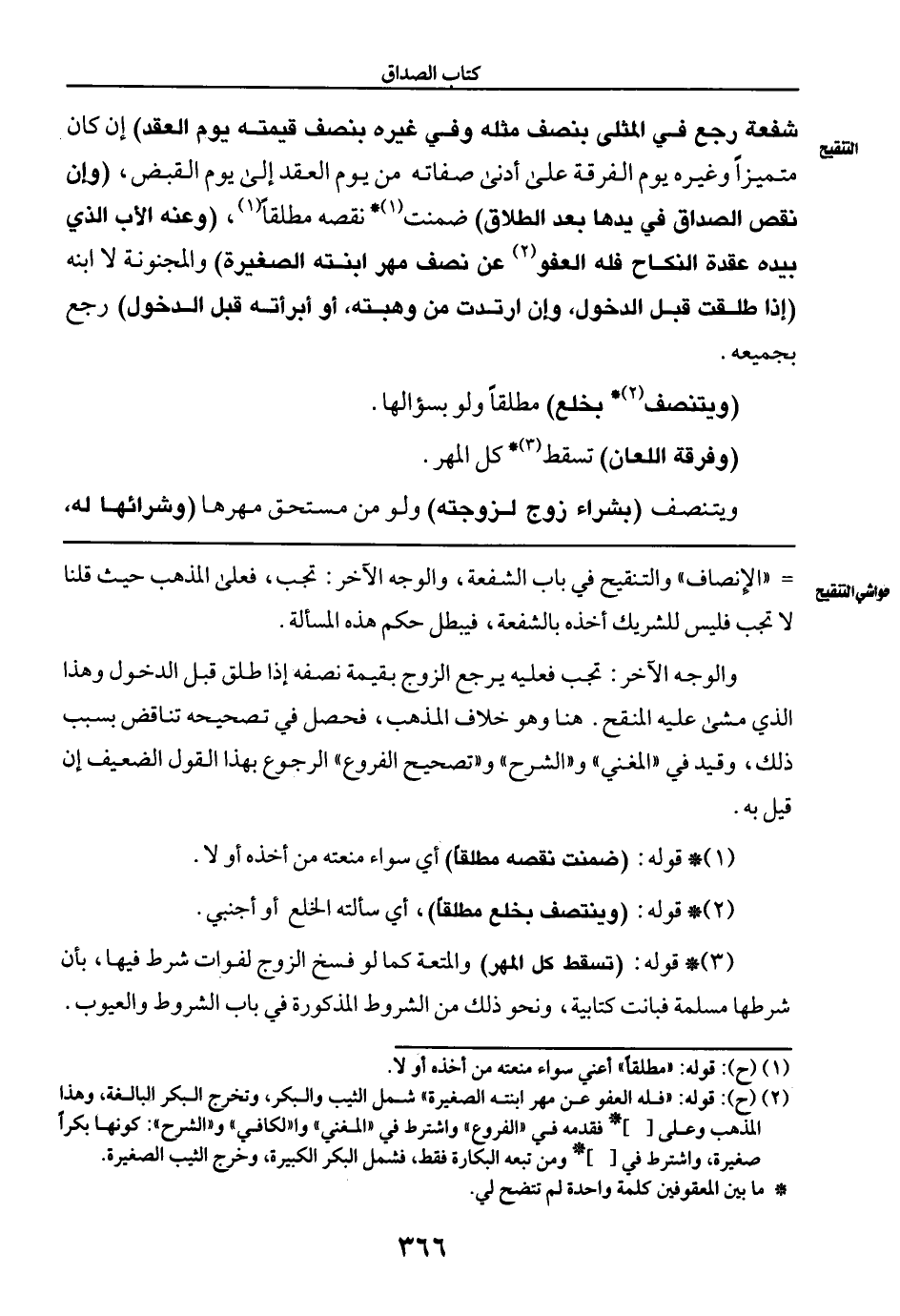 =" الإنصاف" والتنقيح في باب الشفعة، والوجه الآخر: تجب، فعلى المذهب حيث قلنا لا تجب فليس للشريك أخذه بالشفعة، فيبطل حكم هذه المسألة.