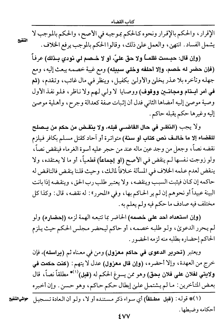 الإقرار، والحكم بالإقرار ونحوه كالحكم بموجبه في الأصح، والحكم بالموجب لا يشمل الفساد. انتهى، والعمل على ذلك، وقالوا الحكم بالموجب يرفع الخلاف.