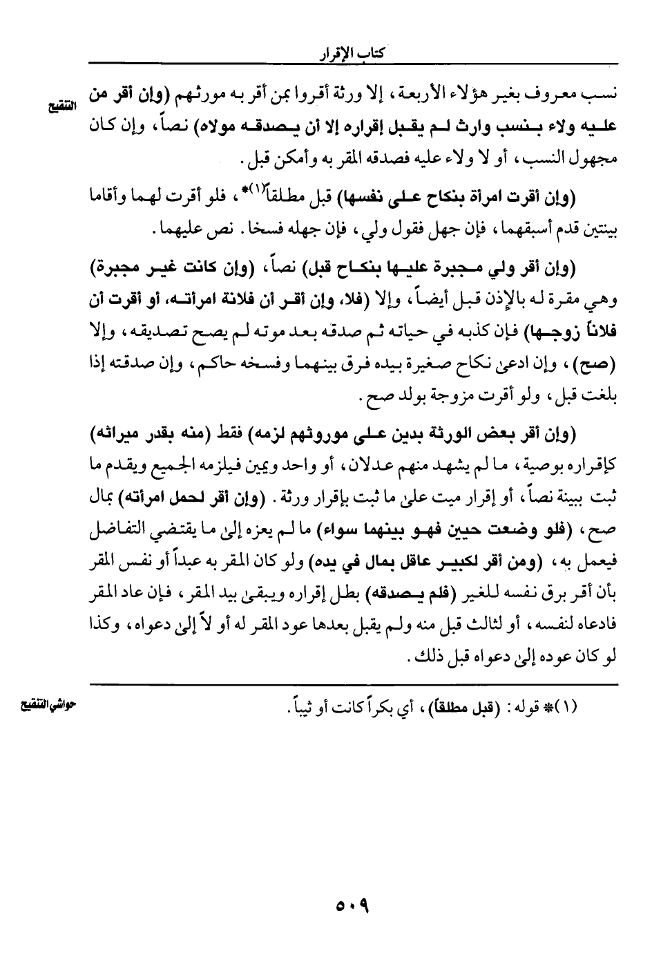 نسب معروف بغير هؤلاء الأربعة، إلا ورثة أقروا بمن أقر به مورثهم (وإن أقر من عليه ولاء بنسب وارث لم يقبل إقراره إلا أن يصدقه مولاه) نصًا، وإن كان مجهول النسب، أو لا ولاء عليه فصدقه المقر به وأمكن قبل.