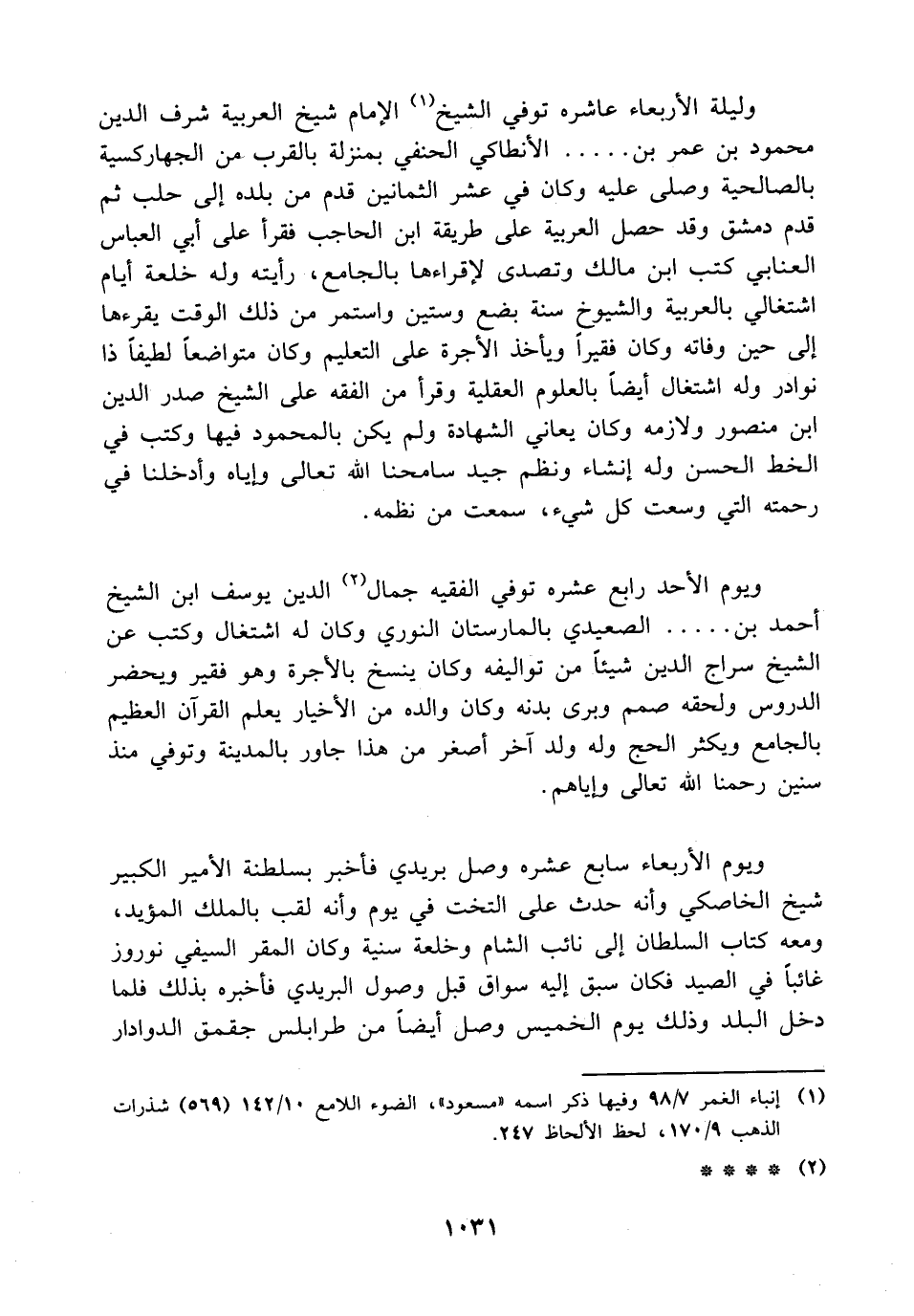(¬1) إنباء الغمر 7/ 98 وفيها ذكر اسمه "مسعود"، الضوء اللامع 10/ 142 (569) شذرات الذهب 9/ 170، لحظ الألحاظ 247.