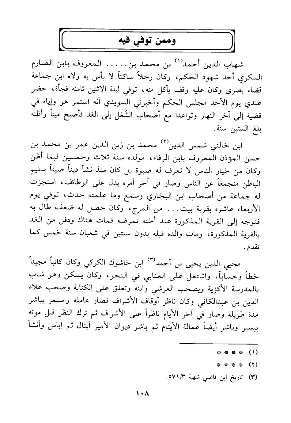 (¬3) تاريخ ابن قاضي شهبة 3/ 571.