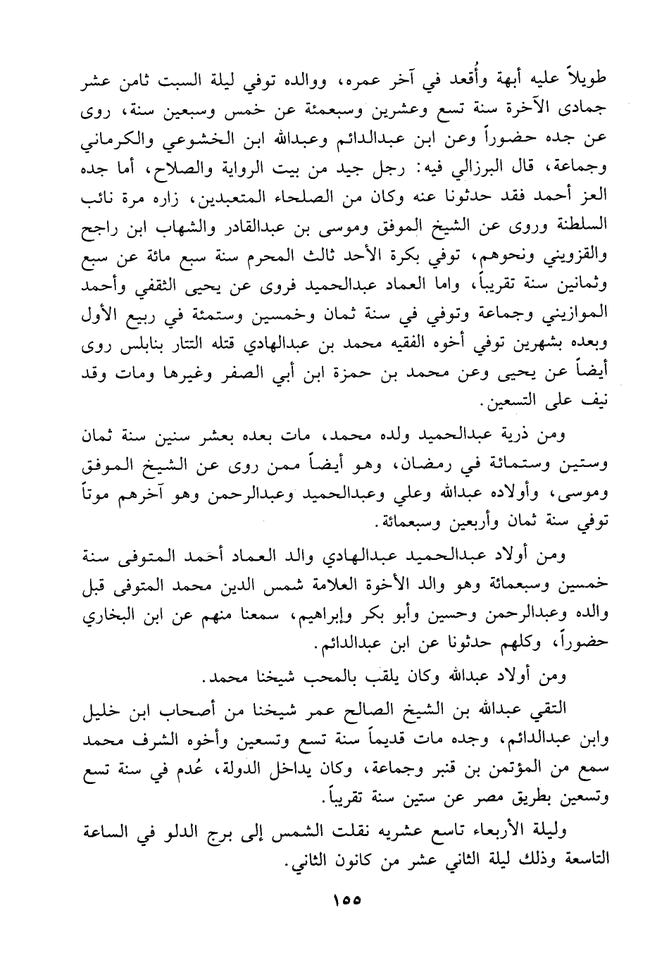 ومن أولاد عبد الحميد عبد الهادي والد العماد أحمد المتوفى سنة خمسين وسبعمائة وهو والد الأخوة العلامة شمس الدين محمد المتوفى قبل والده وعبد الرحمن وحسين وأبو بكر وإبراهيم، سمعنا منهم عن ابن البخاري حضوراً، وكلهم حدثونا عن ابن عبد الدائم.