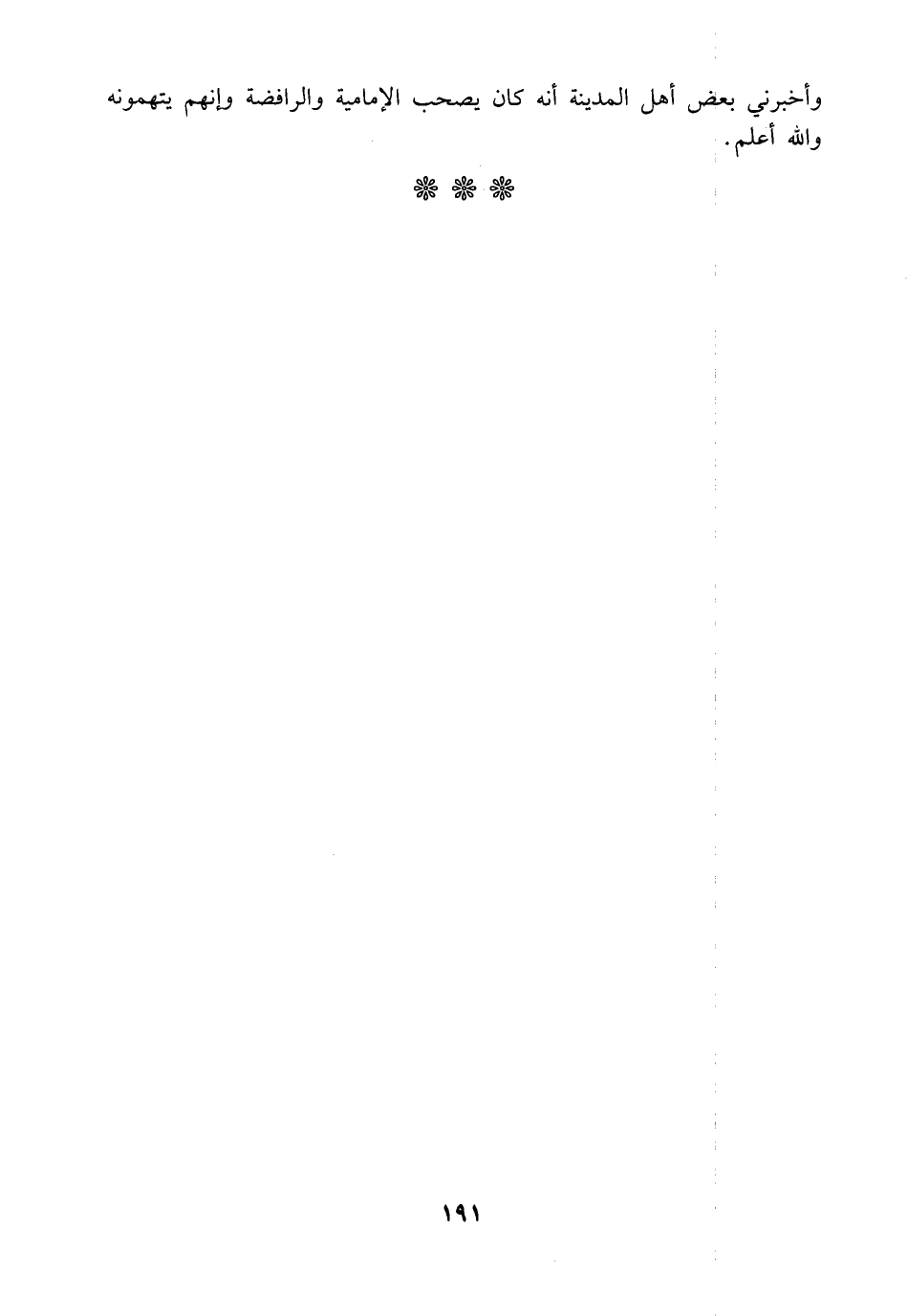 وأخبرني بعض أهل المدينة أنه كان يصحب الإمامية والرافضة وإنهم يتهمونه والله أعلم.