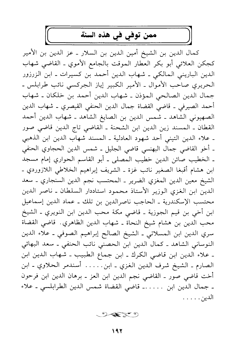 كمال الدين بن الشيخ أمين الدين بن السلار - عز الدين بن الأمير كجكن العلائي أبو بكر العطار الموقت بالجامع الأموي - القاضي شهاب الدين الباريني المالكي - شهاب الدين أحمد بن كسيرات - ابن الزرزور الحريري صاحب الأموال - الأمير الكبير إياز الجركسي نائب طرابلس - جمال الدين الصالحي المؤذن - شهاب الدين أحمد بن خلكان - شهاب أحمد الصيرفي - قاضي القضاة جمال الدين الحنفي القيصري - شهاب الدين الصهيوني الشاهد - شمس الدين بن الصايغ الشاهد - شهاب الدين أحمد القطان - المسند زين الدين ابن الشحنة - القاضي تاج الدين قاضي صور - علاء الدين التيني أحد شهود العادلية - المسند شهاب الدين ابن الذهبي - أخو القاضي جمال البهنسي قاضي الجليل - شمس الدين الحجاوي الحنفي - الخطيب صائن الدين خطيب المصلى - أبو القاسم الحواري إمام مسجد ابن هشام أقبغا الصغير نائب غزة - الشبريف إبراهيم الخلاطي اللازوردي - الشيخ معين الدين المغزي الضرير - المحتسب نجم الدين السنجاري - سعد الدين ابن الغزي الوزير الأستاذ محمود استاددار السلطان - ناصر الدين محتسب الإسكندرية - الحاجب ناصر الدين بن تلك - عماد الدين إسماعيل ابن أخي بن قيم الجوزية - قاضي مكة محب الدين ابن النويري - الشيخ محب الدين بن هشام شيخ النحاة - شهاب الدين الظاهري. قاضي القضاة سري الدين ابن المسلاتي - الشيخ الصالح إبراهيم الصوفي - علاء الدين النوساني الشاهد - كمال الدين ابن الحصني نائب الحنفي - سعد البهائي - علاء الدين ابن قاضي الكرك - ابن جماع الطبيب - شهاب الدين ابن الصارم - الشيخ شرف الدين الغزي - ابن ..... أسندمر الحلاوي - ابن أخت قاضي صور - القاضي نجم الدين ابن العز - برهان الدين ابن فرحون - جمال الدين ابن ..... - قاضي القضاة شمس الدين الطرابلسي - علاء الدين .....