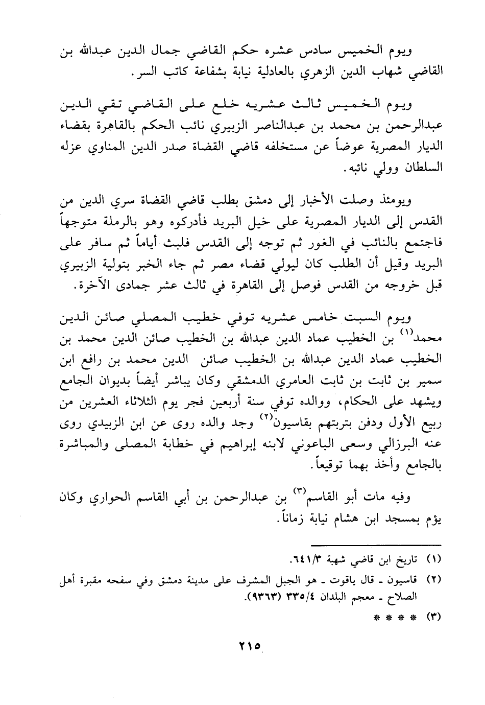 (¬2) قاسيون -قال ياقوت -هو الجبل المشرف على مدينة دمشق وفي سفحه مقبرة أهل الصلاح- معجم البلدان 4/ 335 (9363).