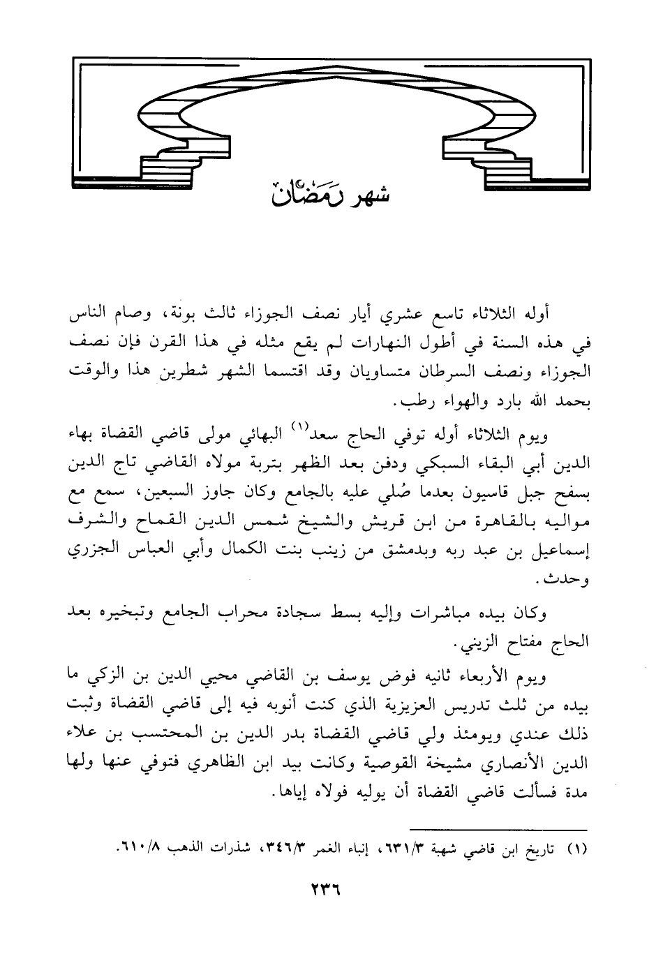 (¬1) تاريخ ابن قاضي شهبة 3/ 631، إنباء الغمر 3/ 346، شذرات الذهب 8/ 610.