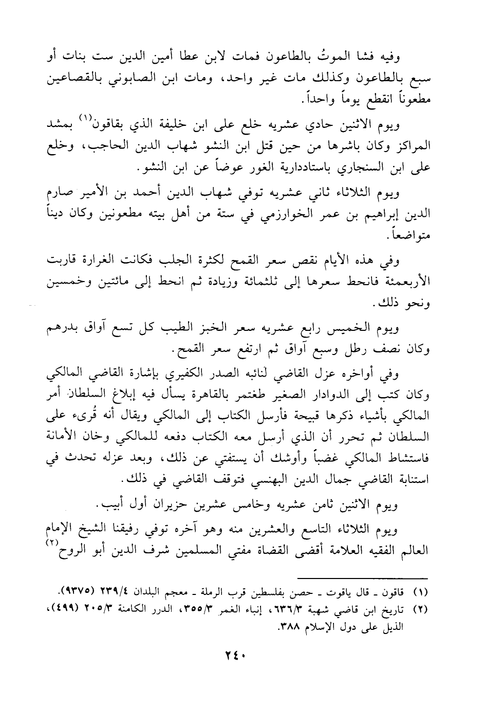 وفي هذه الأيام نقص سعر القمح لكثرة الجلب فكانت الغرارة قاربت الأربعمئة فانحط سعرها إلى ثلثمائة وزيادة ثم انحط إلى مائتين وخمسين ونحو ذلك.