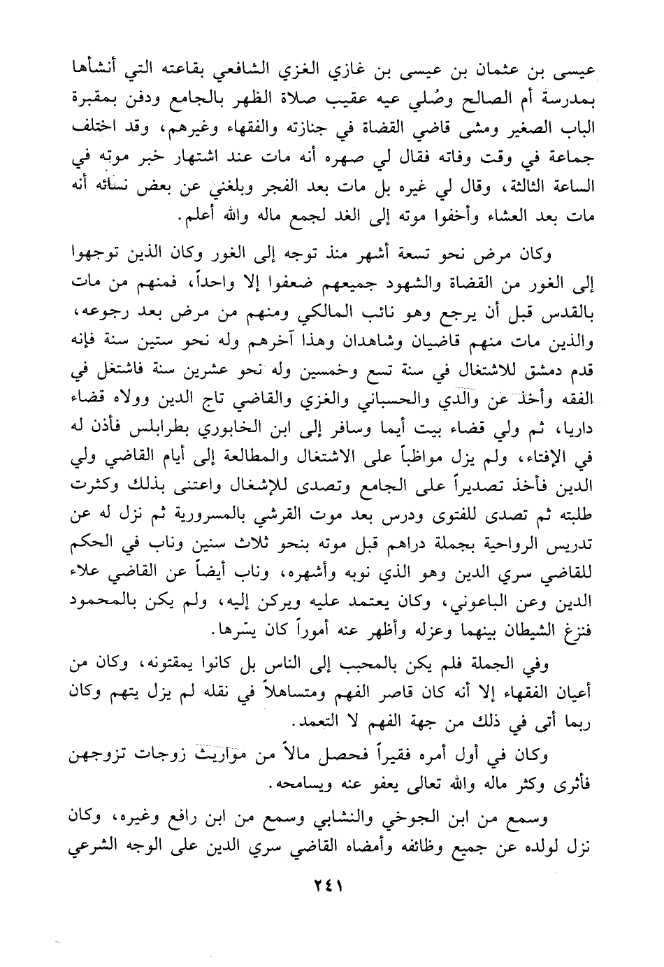وفي الجملة فلم يكن بالمحبب إلى الناس بل كانوا يمقتونه، وكان من أعيان الفقهاء إلا أنه كان قاصر الفهم ومتساهلاً في نقله لم يزل يتهم وكان ربما أتى في ذلك من جهة الفهم لا التعمد.