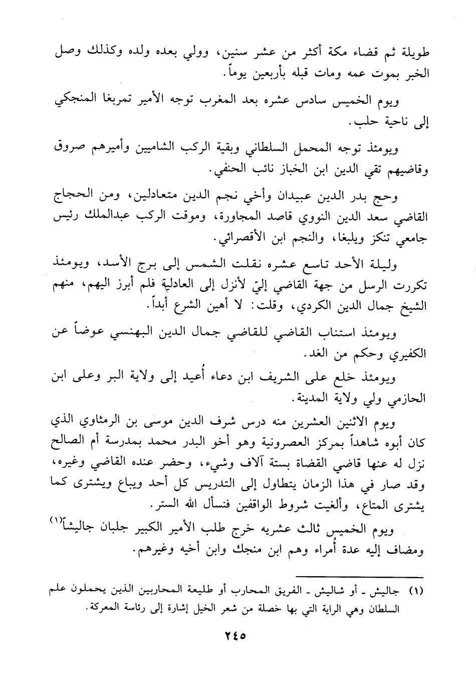 (¬1) جاليش -أو شاليش- الفريق المحارب اْو طليعة المحاربين الذين يحملون علم السلطان وهي الراية التي بها خصلة من شعر الخيل إشارة إلى رئاسة المعركة.
