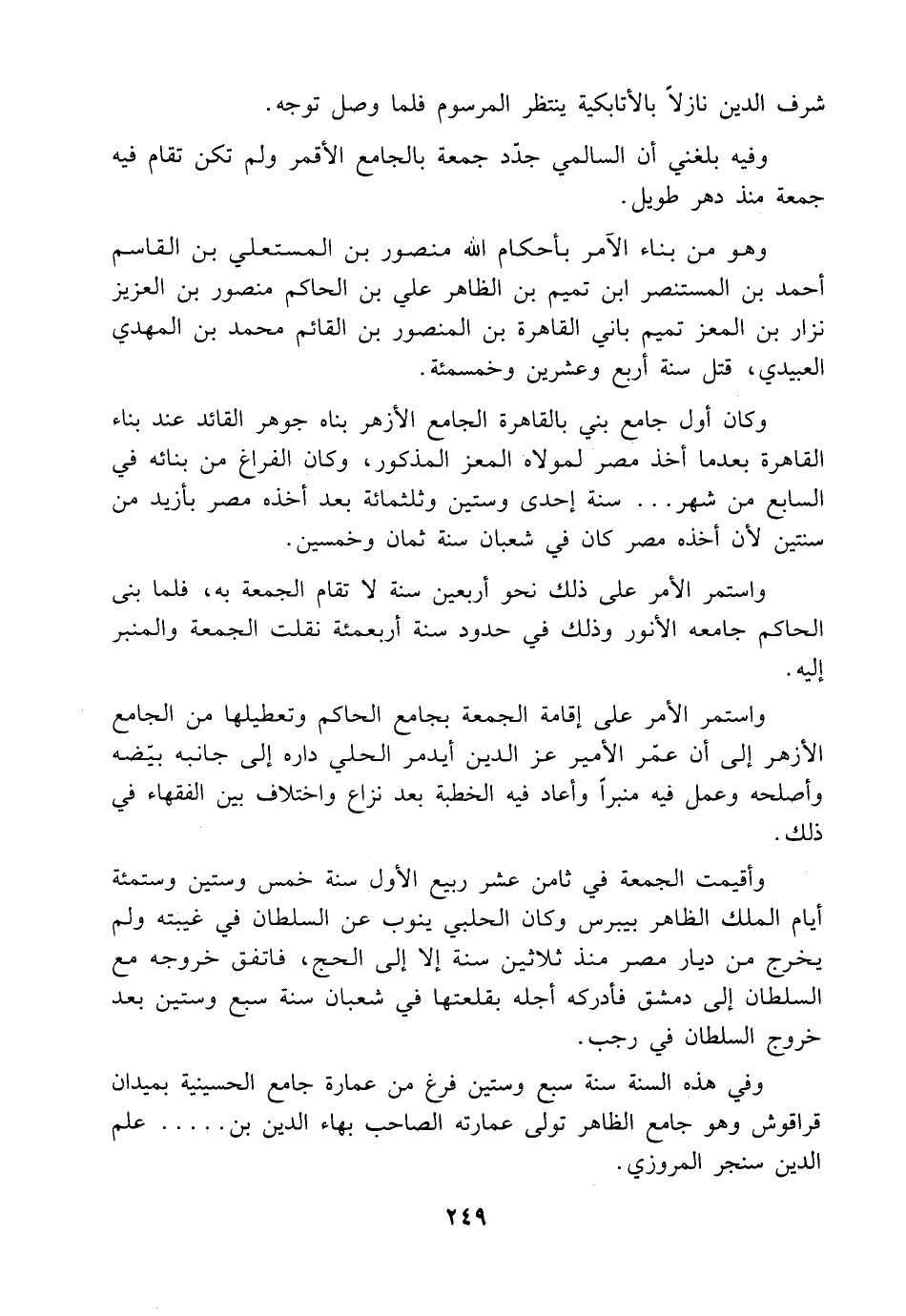وفيه بلغني أن السالمي جذد جمعة بالجامع الأقمر ولم تكن تقام فيه جمعة منذ دهر طويل.