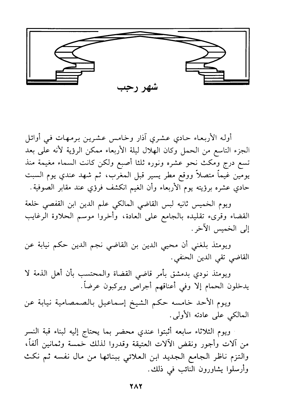 ويوم الأحد خامسه حكم الشيخ إسماعيل بالصمصامية نيابة عن المالكي على عادته الأولى.