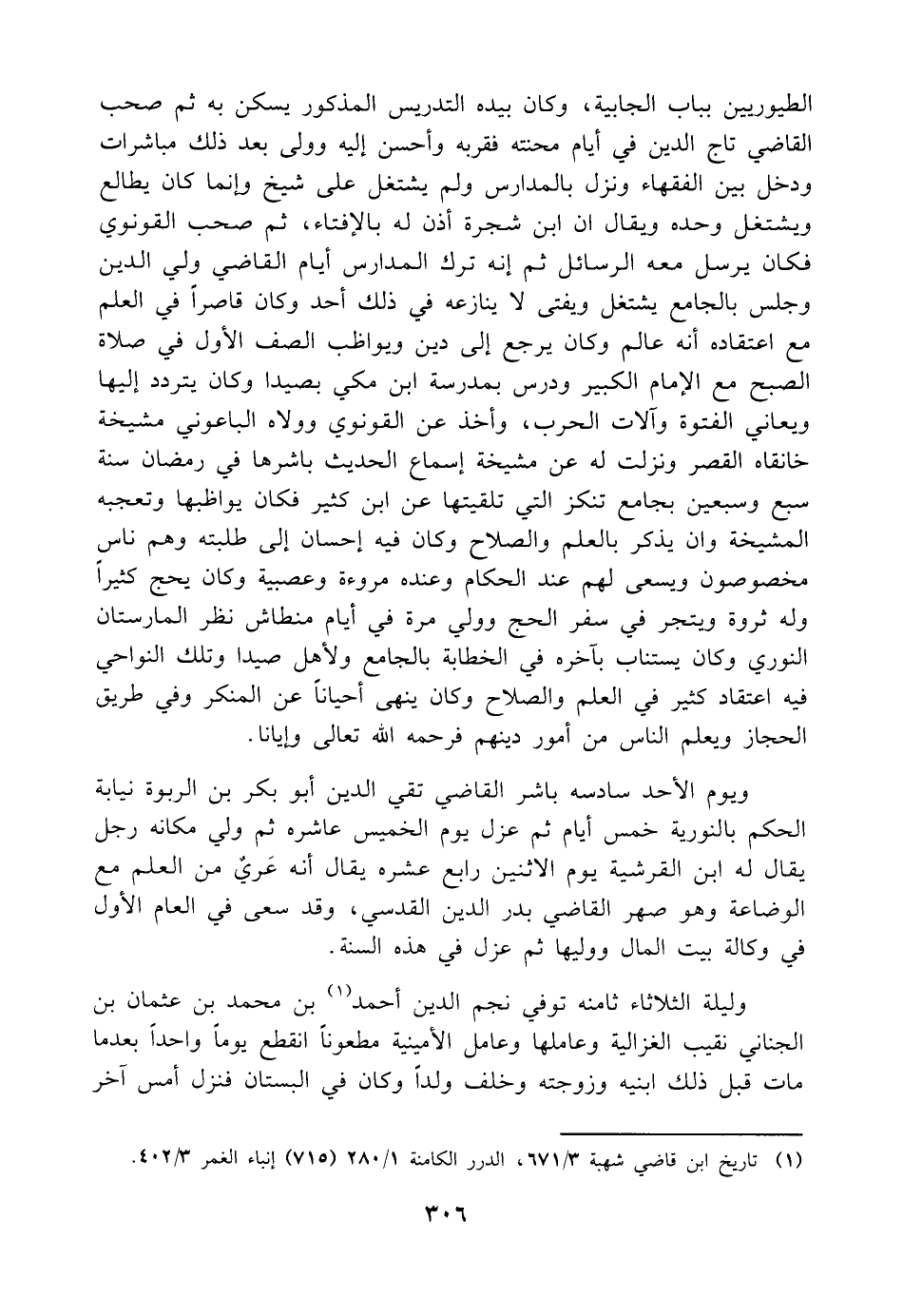 (¬1) تاريخ ابن قاضي شهبة 3/ 671، الدرر الكامنة 1/ 280 (715) إنباء الغمر 2/ 403.