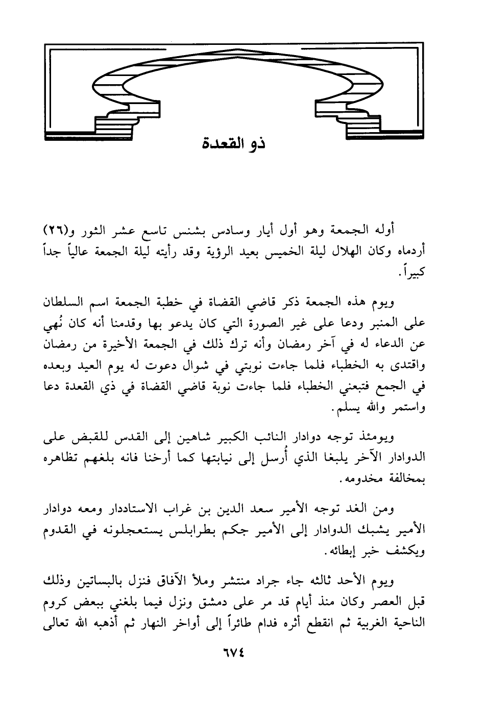ويوم هذه الجمعة ذكر قاضي القضاة في خطبة الجمعة اسم السلطان على المنبر ودعا على غير الصورة التي كان يدعو بها وقدمنا أنه كان نُهي عن الدعاء له في آخر رمضان وأنه ترك ذلك في الجمعة الأخيرة من رمضان واقتدى به الخطباء فلما جاءت نوبتي في شوال دعوت له يوم العيد وبعده في الجمع فتبعني الخطباء فلما جاءت نوبة قاضي القضاة في ذي القعدة دعا واستمر والله يسلم.