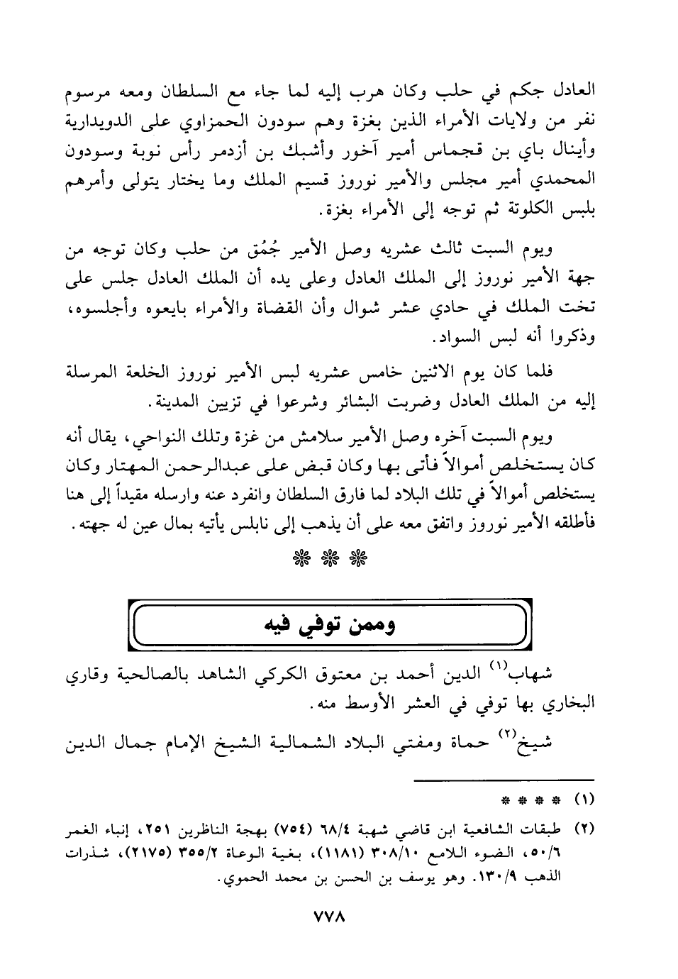 (¬2) طبقات الشافعية ابن قاضي شهبة 4/ 68 (754) بهجة الناظرين 251، إنباء الغمر 6/ 50، الضوء اللامع 10/ 308 (1181)، بغية الوعاة 2/ 355 (2175)، شذرات الذهب 9/ 130. وهو يوسف بن الحسن بن محمد الحموي.