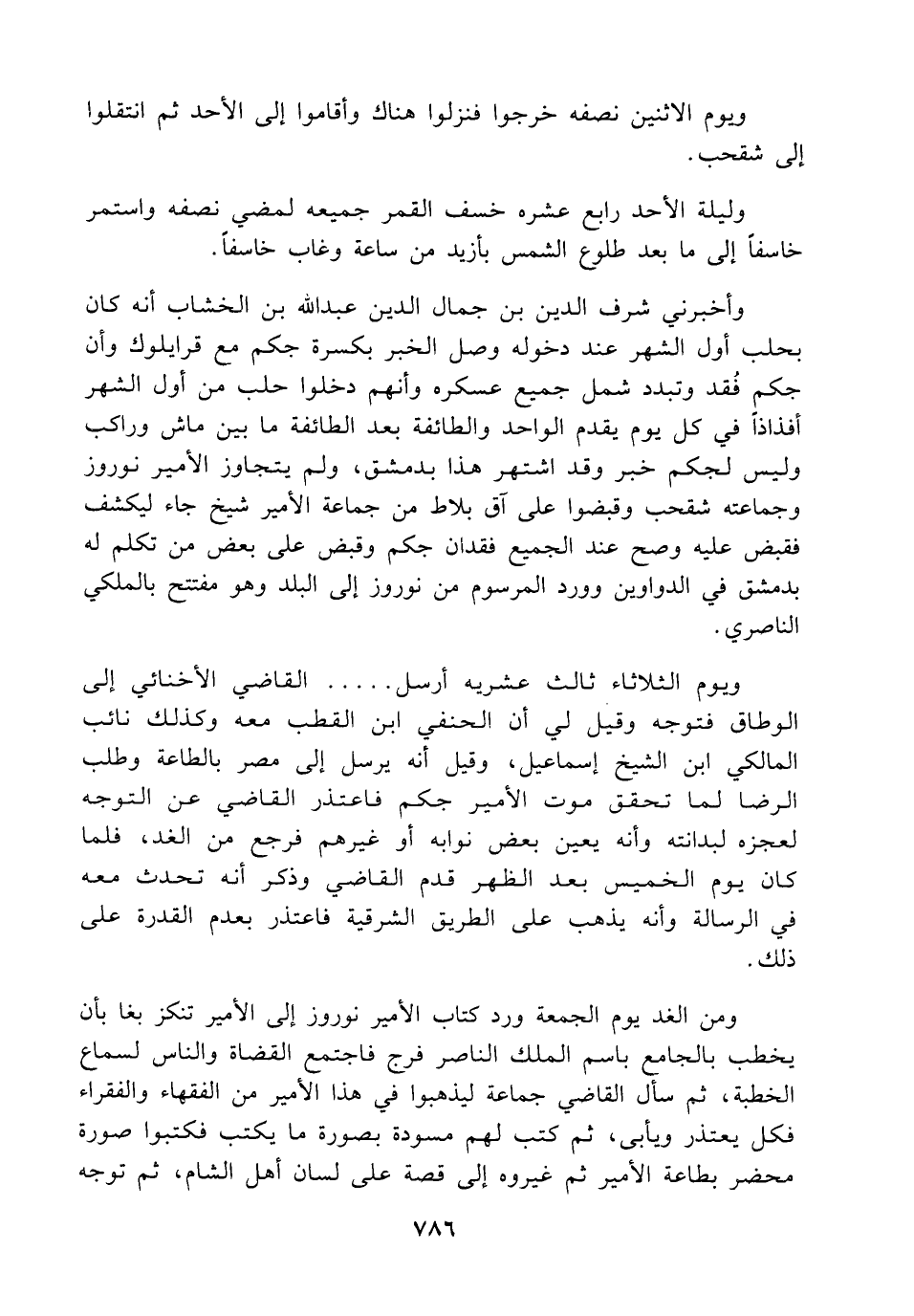 ويوم الثلاثاء ثالث عشريه أرسل ..... القاضي الأخنائي إلى الوطاق فتوجه وقيل لي أن الحنفي ابن القطب معه وكذلك نائب المالكي ابن الشيخ إسماعيل، وقيل أنه يرسل إلى مصر بالطاعة وطلب الرضا لما تحقق موت الأمير جكم فاعتذر القاضي عن التوجه لعجزه لبدانته وأنه يعين بعض نوابه أو غيرهم فرجع من الغد، فلما كان يوم الخميس بعد الظهر قدم القاضي وذكر أنه تحدث معه في الرسالة وأنه يذهب على الطريق الشرقية فاعتذر بعدم القدرة على ذلك.