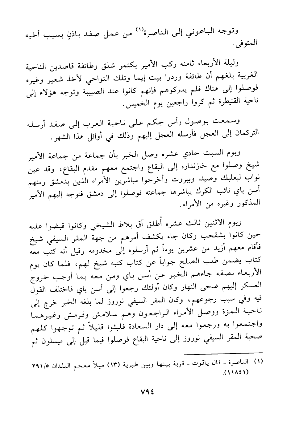 (¬1) الناصرة - قال ياقوت - قرية بينها وبين طبربة (13) ميلًا معجم البلدان 5/ 291 (11841).