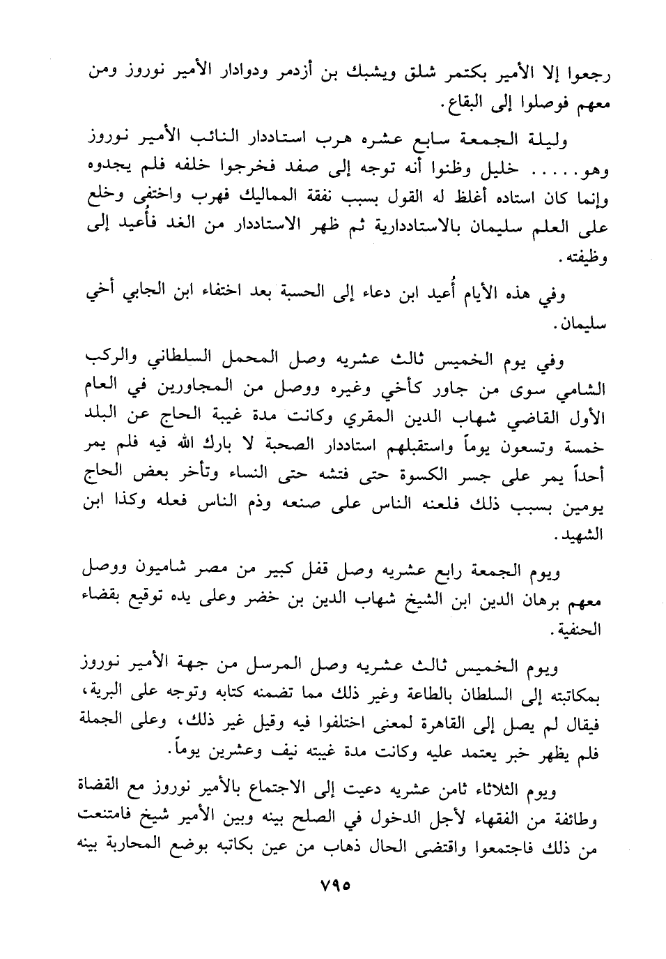 رجعوا إلا الأمير بكتمر شلق ويشبك بن أزدمر ودوادار الأمير نوروز ومن معهم فوصلوا إلى البقاع.