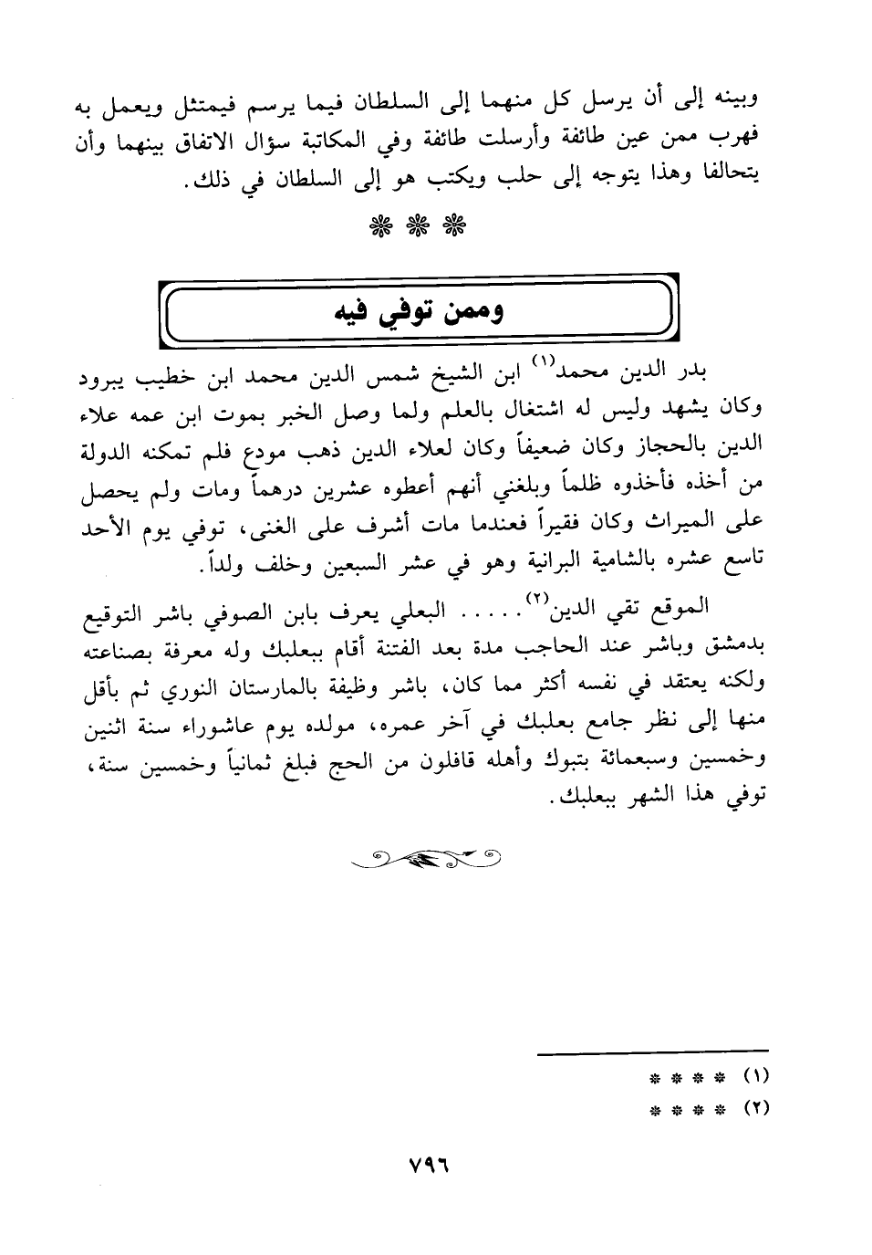 الموقع تقي الدين (¬2) ..... البعلي يعرف بابن الصوفي باشر التوقيع بدمشق وباشر عند الحاجب مدة بعد الفتنة أقام ببعلبك وله معرفة بصناعته ولكنه يعتقد في نفسه أكثر مما كان، باشر وظيفة بالمارستان النوري ثم بأقل منها إلى نظر جامع بعلبك في آخر عمره، مولده يوم عاشوراء سنة اثنين وخمسين وسبعمائة بتبوك وأهله قافلون من الحج فبلغ ثمانيًا وخمسين سنة، توفي هذا الشهر ببعلبك.