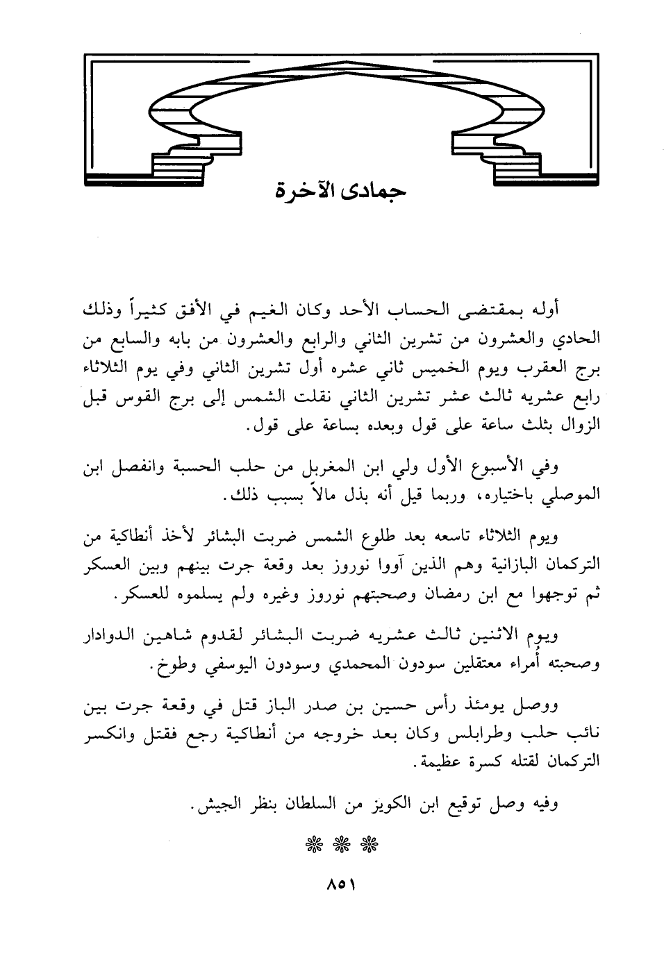 ووصل يومئذ رأس حسين بن صدر الباز قتل في وقعة جرت بين نائب حلب وطرابلس وكان بعد خروجه من أنطاكية رجع فقتل وانكسر التركمان لقتله كسرة عظيمة.