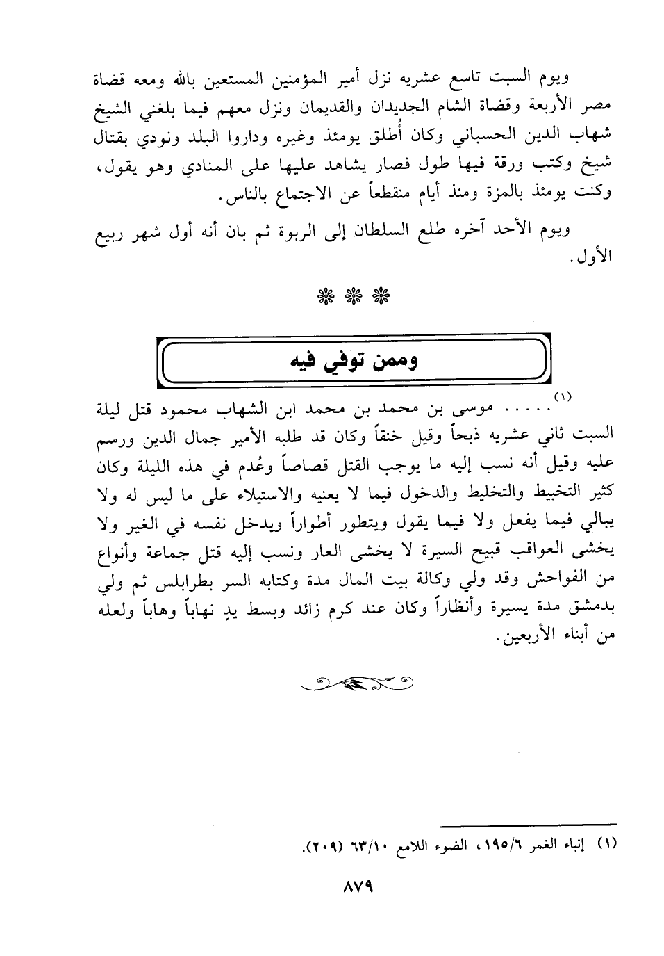 (¬1) إنباء الغمر 6/ 195، الضوء اللامع 10/ 63 (209).
