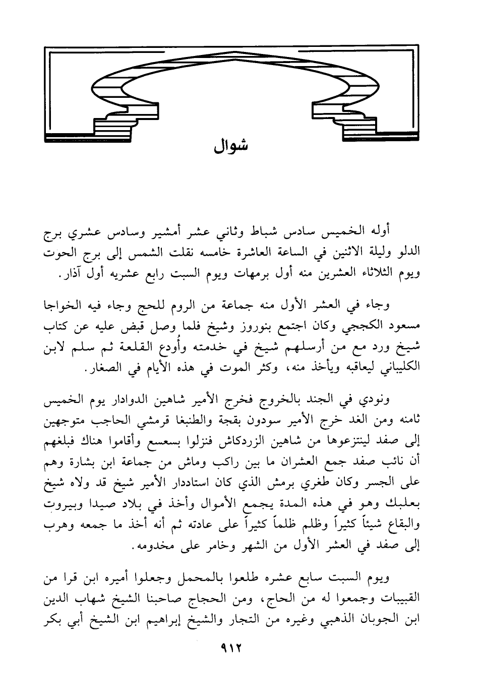 وجاء في العشر الأول منه جماعة من الروم للحج وجاء فيه الخواجا مسعود الكججي وكان اجتمع بنوروز وشيخ فلما وصل قبض عليه عن كتاب شيخ ورد مع من أرسلهم شيخ في خدمته وأُودع القلعة ثم سلم لابن الكليباني ليعاقبه ويأخذ منه، وكثر الموت في هذه الأيام في الصغار.