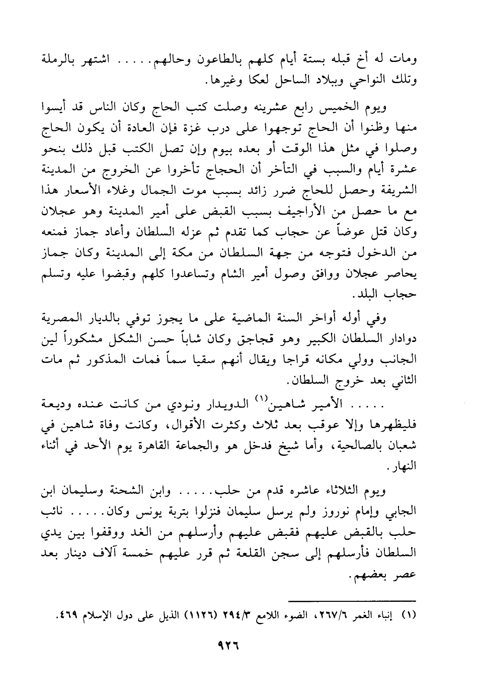 ويوم الثلاثاء عاشره قدم من حلب ..... وابن الشحنة وسليمان ابن الجابي وإمام نوروز ولم يرسل سليمان فنزلوا بتربة يونس وكان ..... نائب حلب بالقبض عليهم فقبض عليهم وأرسلهم من الغد ووقفوا بين يدي السلطان فأرسلهم إلى سجن القلعة ثم قرر عليهم خمسة آلاف دينار بعد عصر بعضهم.