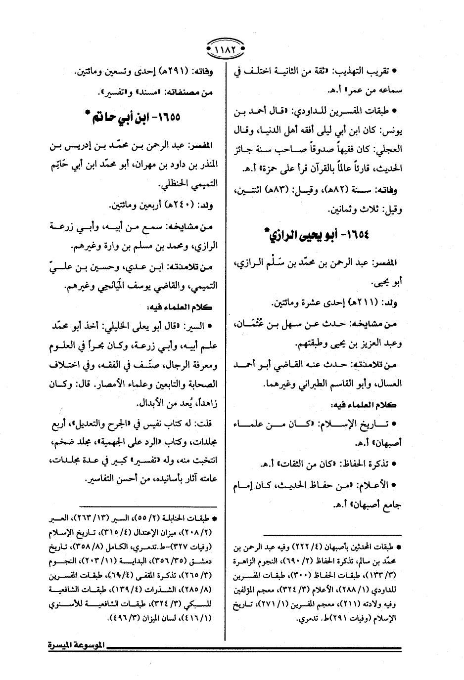 المفسر: عبد الرحمن بن محمّد بن إدريس بن المنذر بن داود بن مهران، أبو محمّد بن أبي حَاتِم التميمي الحنظلي.