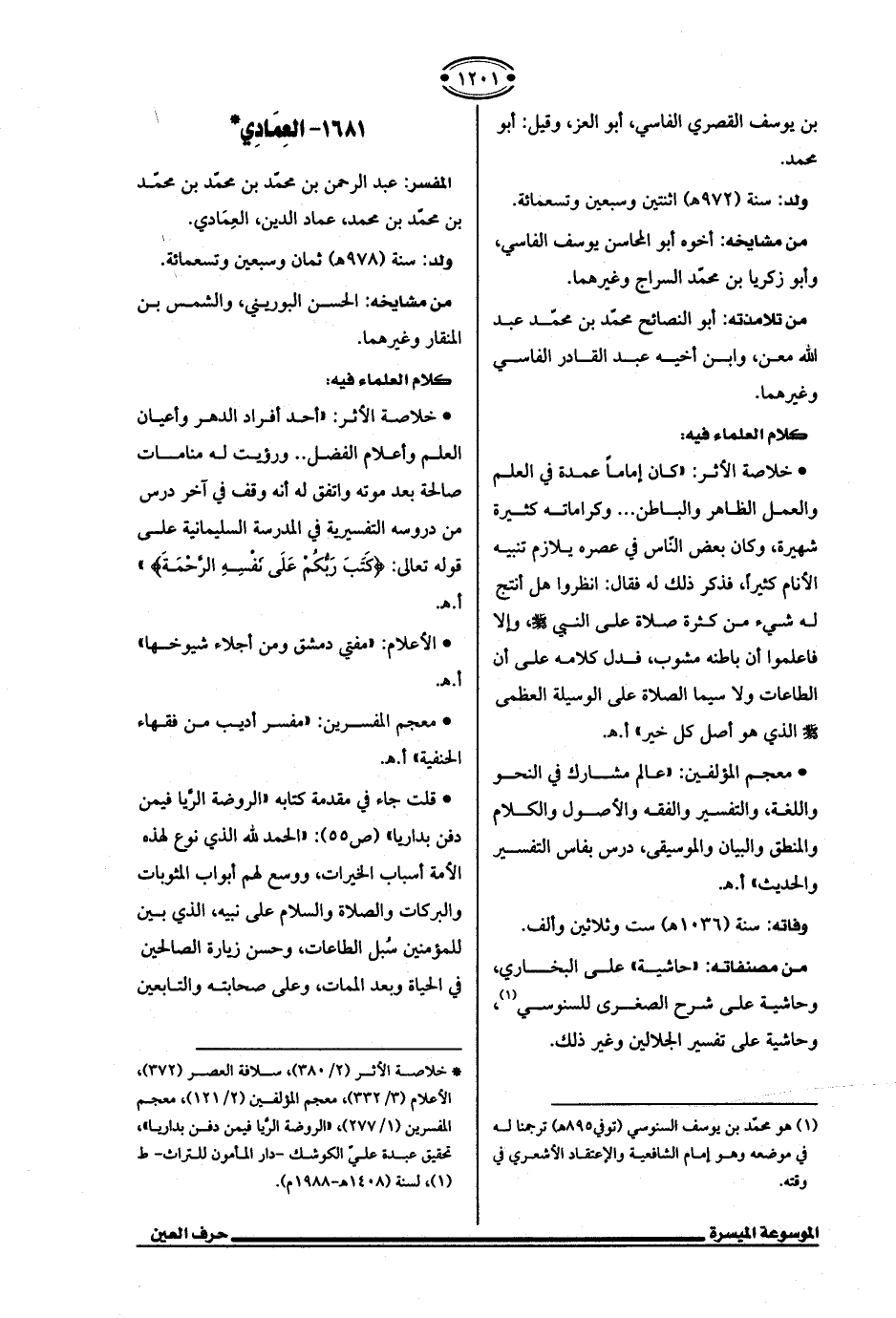 المفسر: عبد الرحمن بن محمد بن محمّد بن محمد بن محمد بن محمد، عماد الدين، العِمَادي.