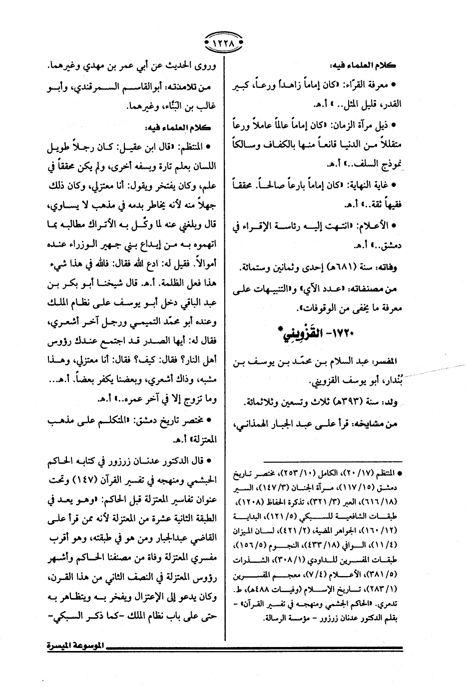 • مختصر تاريخ دمشق: "المتكلم على مذهب المعتزلة" أ. هـ.