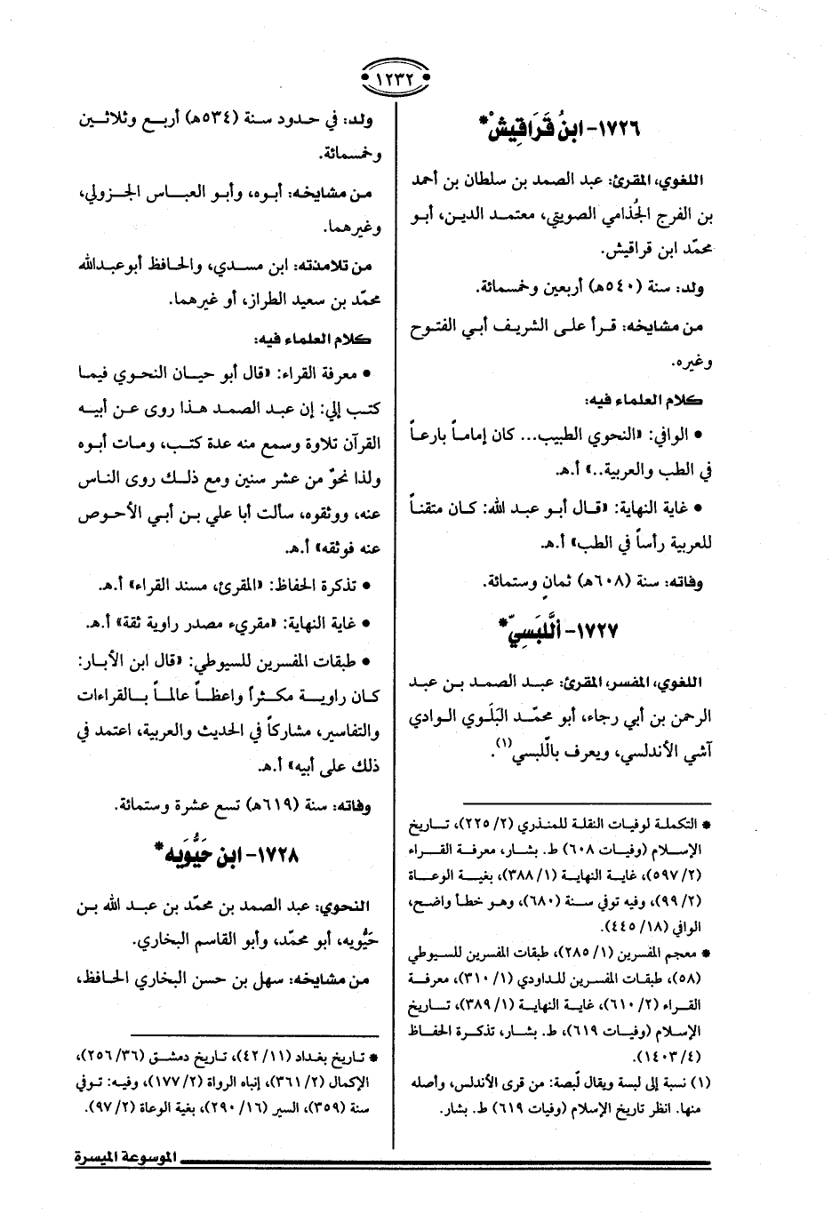 كتاب الموسوعة الميسرة في تراجم أئمة التفسير والإقراء والنحو واللغة (اسم الجزء: 2)