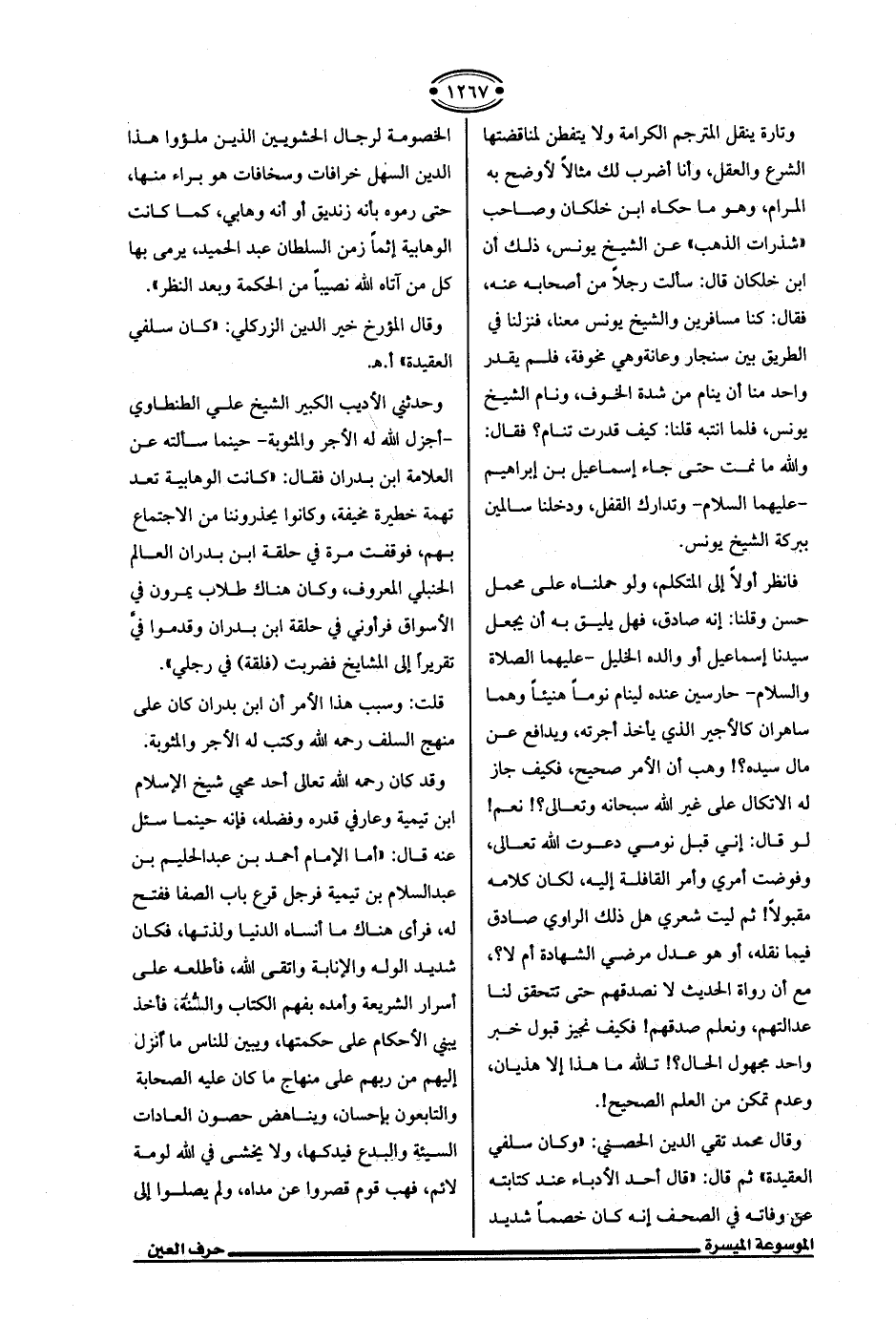 قلت: وسبب هذا الأمر أن ابن بدران كان على منهج السلف رحمه الله وكتب له الأجر والمثوبة.