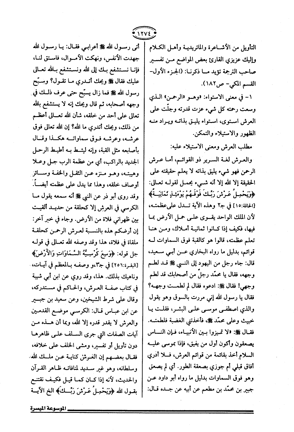 1 - في معنى الاستواء: "وهو "الرحمن" الذي وسعت رحمته كل شيء عزت قدرته وجلّت على العرش استوى، استواء يليق بذاته ويراد منه الظهور والاستيلاء والتمكن.