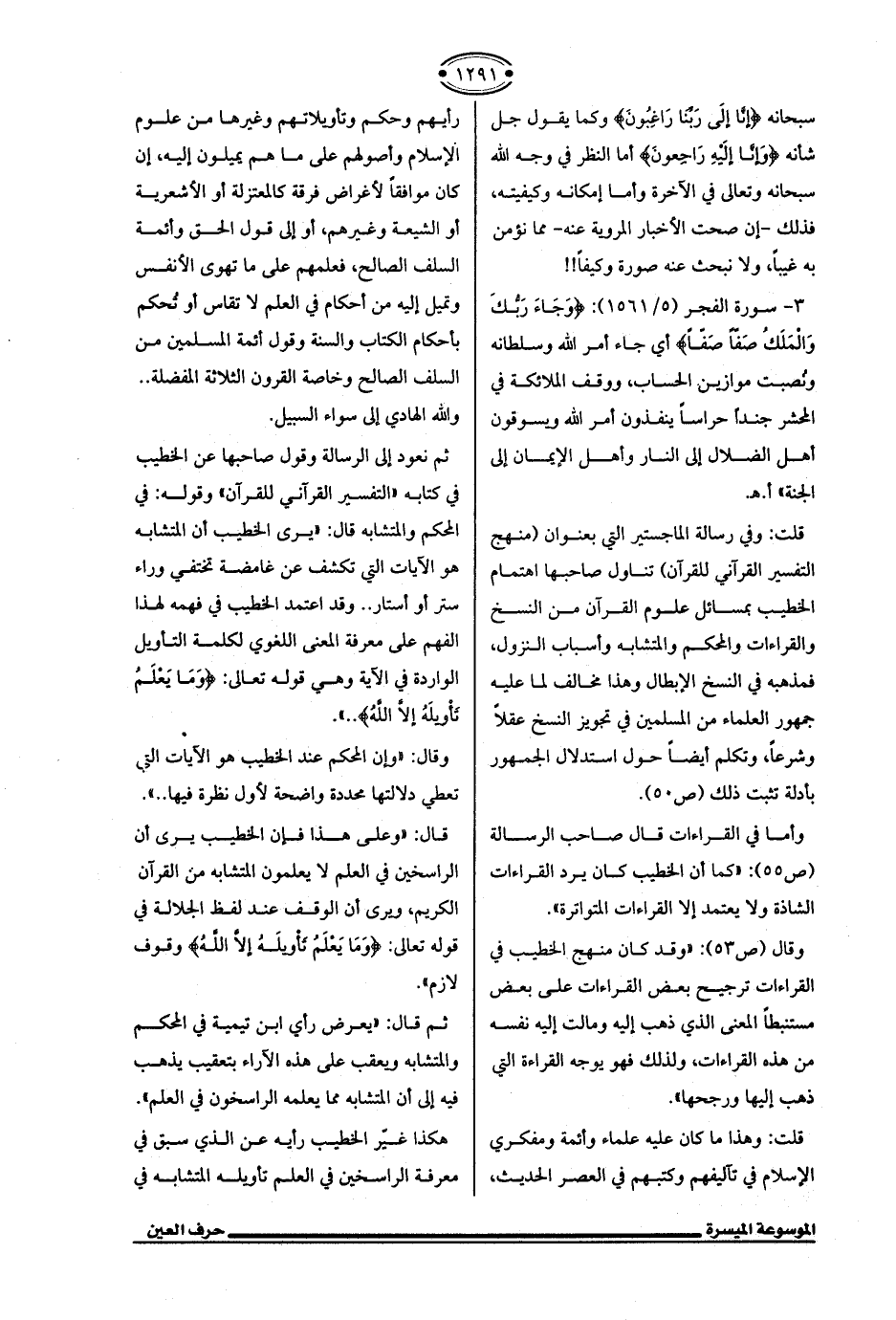 هكذا غيَّر الخطيب رأيه عن الذي سبق في معرفة الراسخين في العلم تأويله المتشابه في