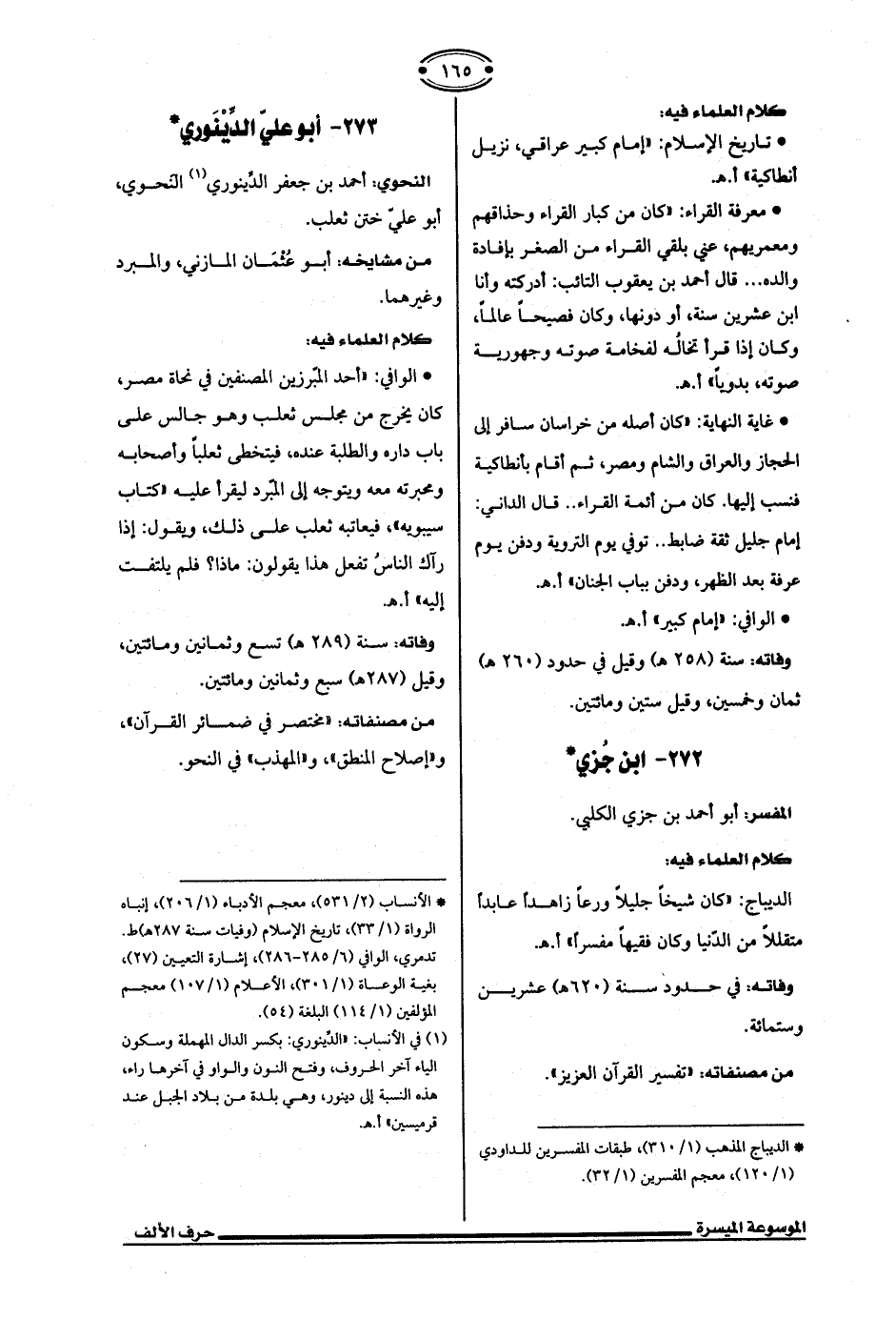 (¬1) في الأنساب: "الدِّينوري: بكسر الدال المهملة وسكون الياء آخر الحروف، وفتح النون والواو في آخرها راء، هذه النسبة إلى دينور، وهي بلدة من بلاد الجبل عند قرميسين" أ. هـ.