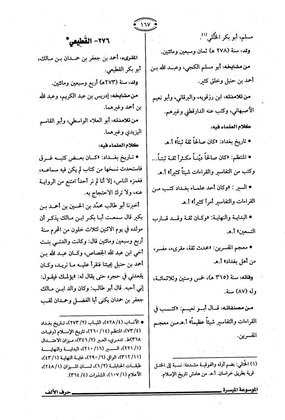 المقرئ: أحمد بن جعفر بن حمدان بن مالك، أَبو بكر القطيعي.