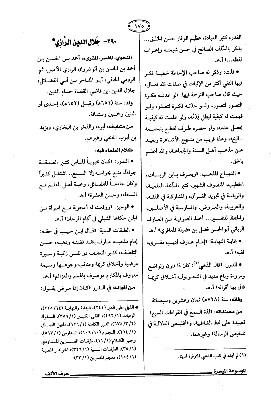 * الدرر: "قال الذهبي (¬1): كان ذا فنون وتواضع ومروءة وباع مديد في النحو وله أخلاق كريمة فاق بها أقرانه" أ. هـ.