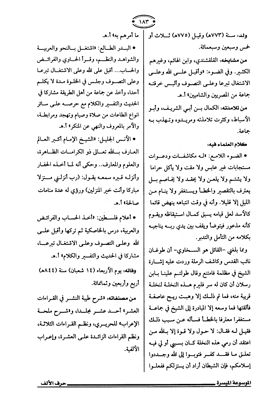 ولد: سنة (773 هـ) وقيل (775 هـ) ثلاث أو خمس وسبعين وسبعمائة.