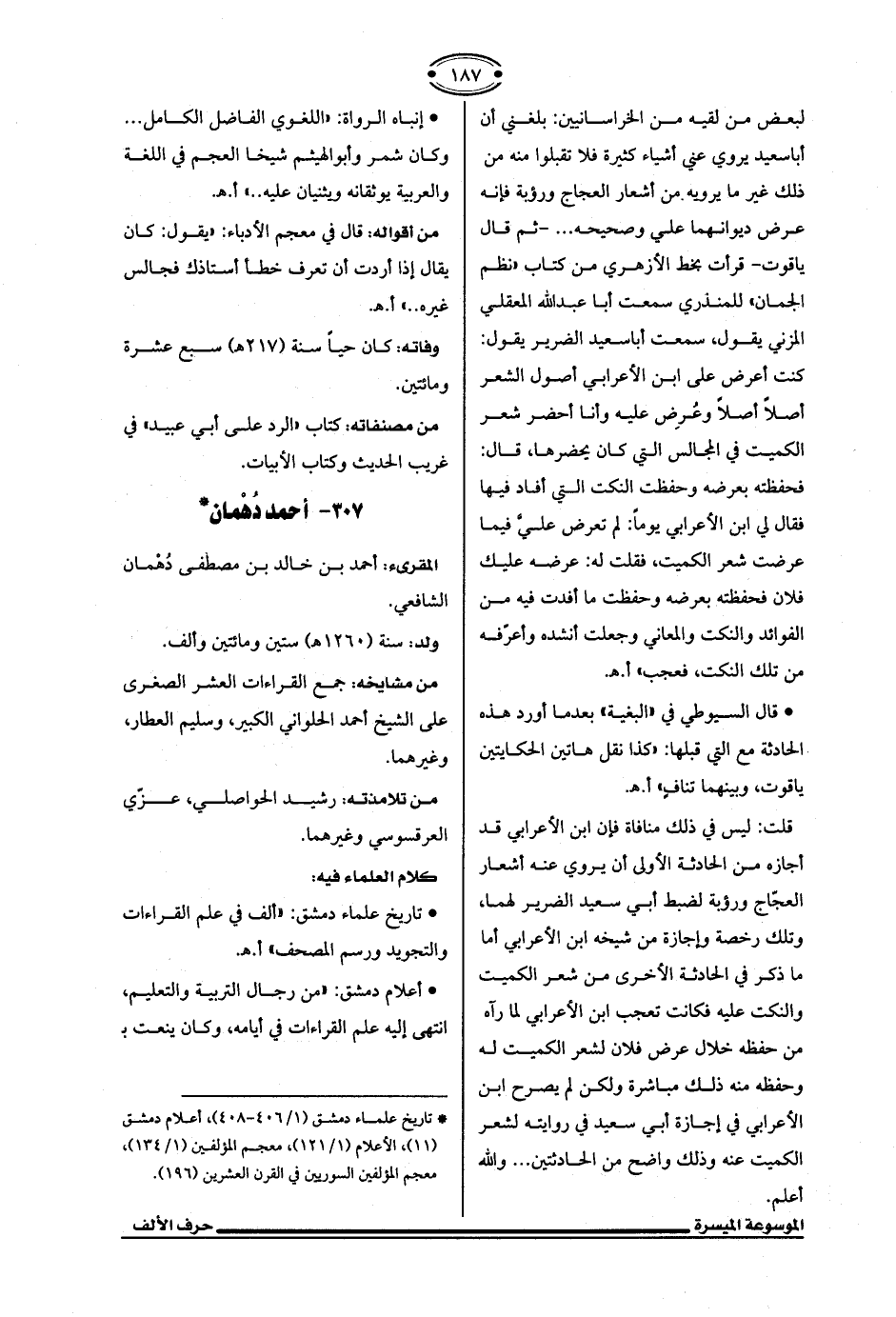 * تاريخ علماء دمشق: "ألف في علم القراءات والتجويد ورسم المصحف" أ. هـ.