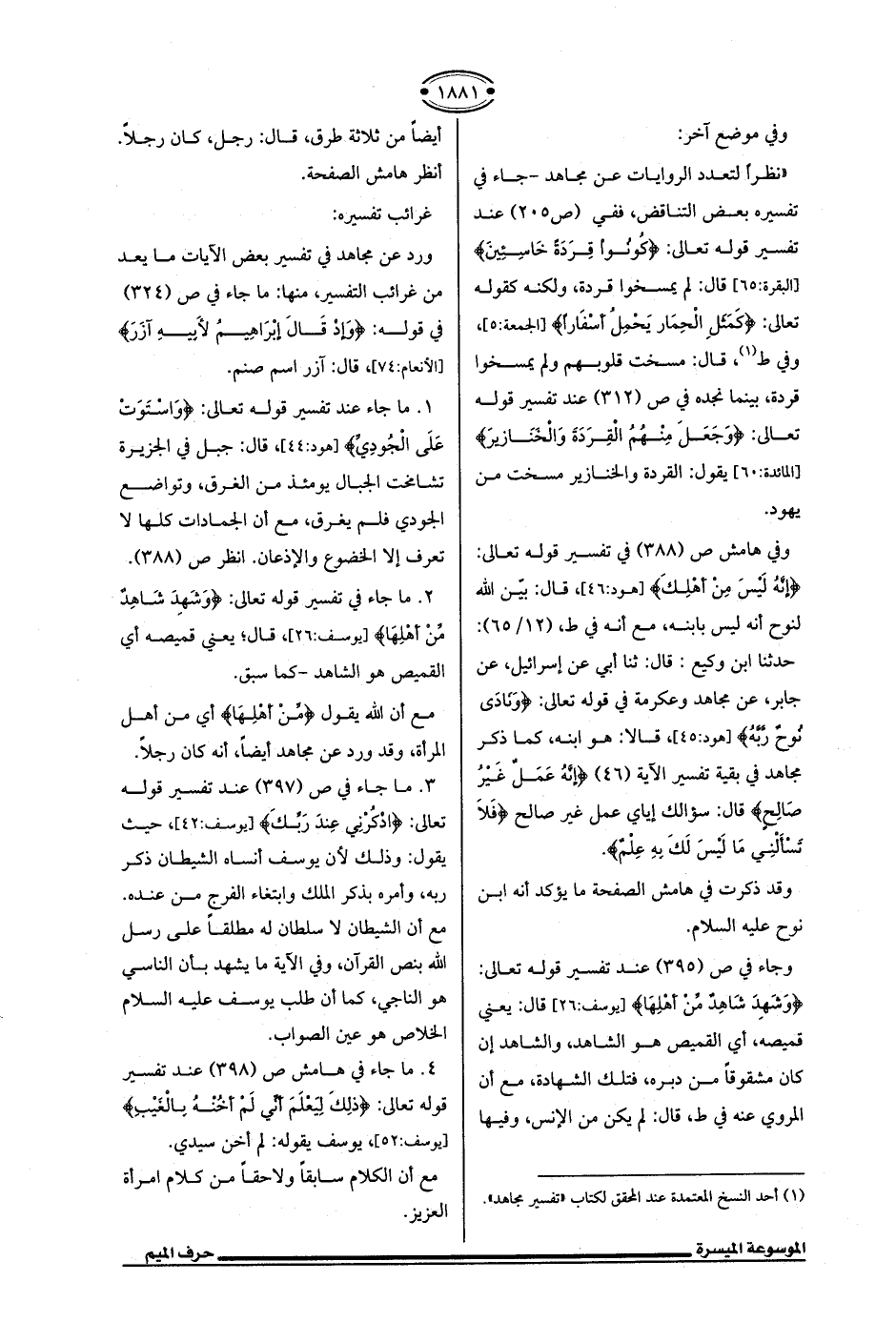 (¬1) أحد النسخ المعتمدة عند المحقق لكتاب "تفسير مجاهد".