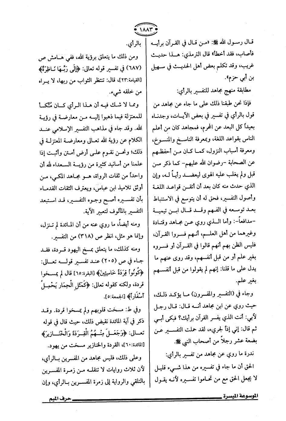 وعلى ذلك، فليس مجاهد من المفسرين بالرأي، لأن ثلاث روايات لا تنقله من زمرة المفسرين بالتلقي والرواية إلى زمرة المفسرين بالرأي، وإن