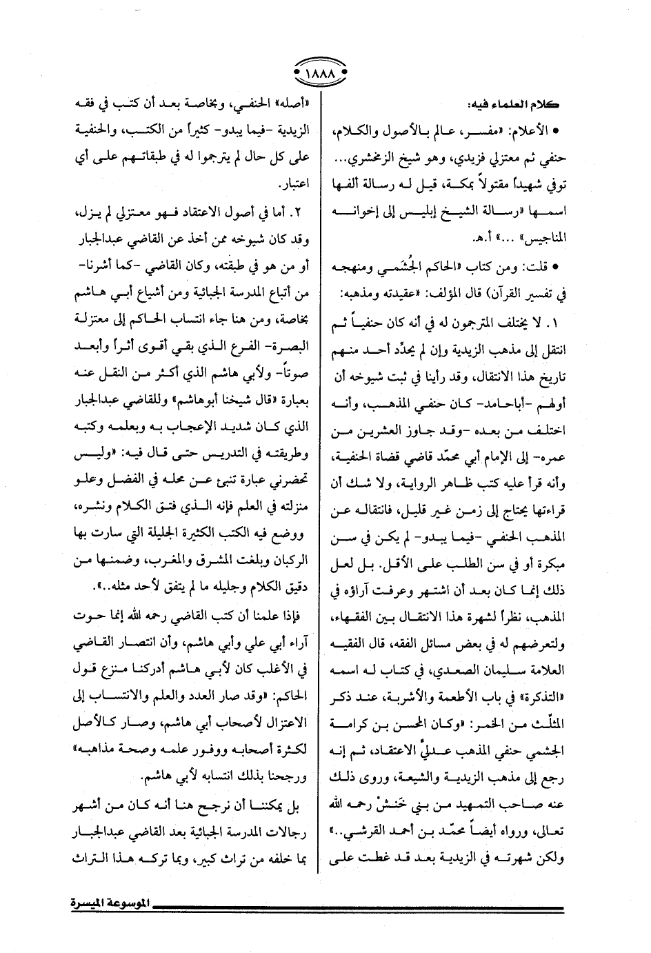 • قلت: ومن كتاب (الحاكم الجُشَمي ومنهجه في تفسير القرآن) قال المؤلف: "عقيدته ومذهبه: