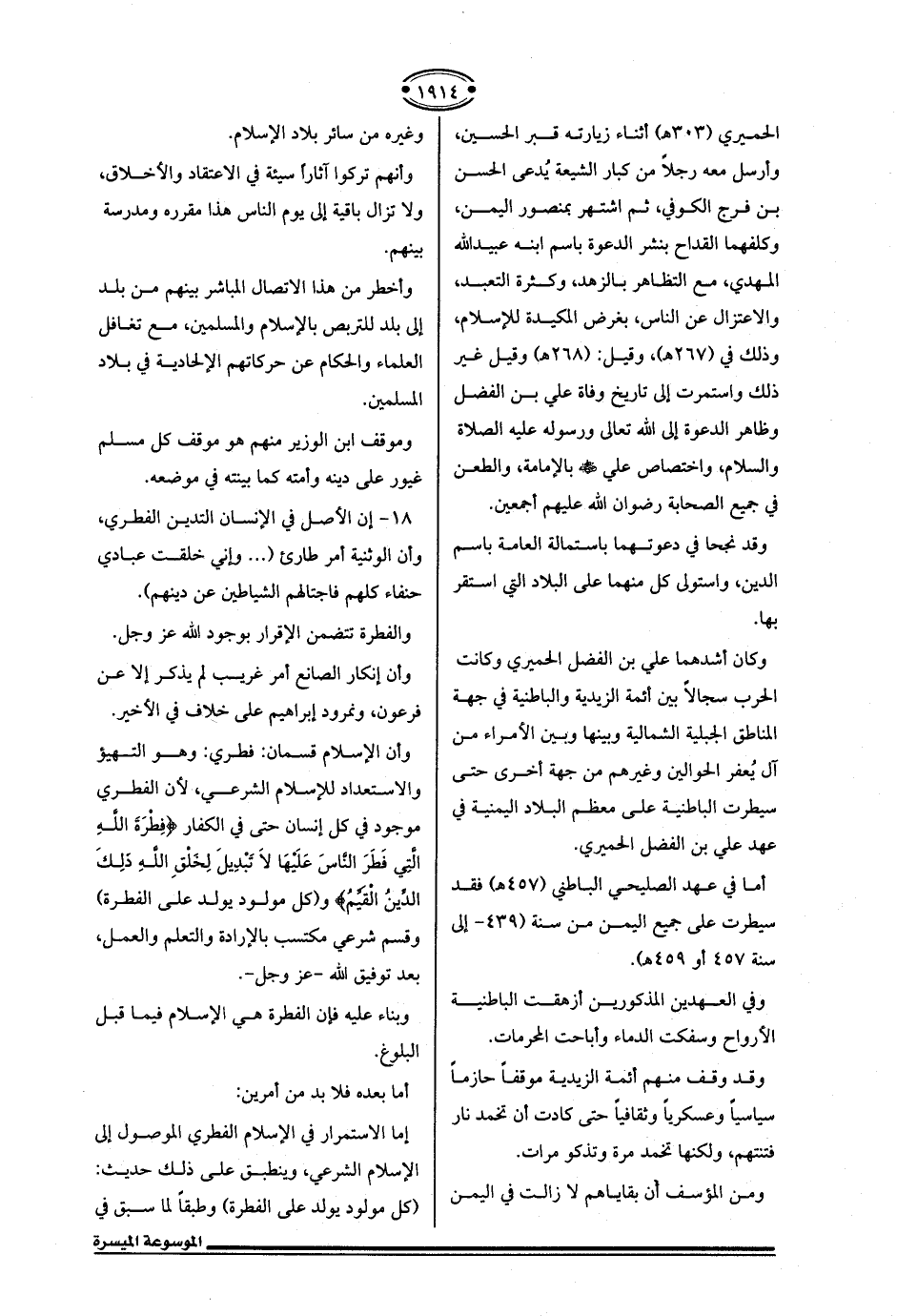 18 - إن الأصل في الإنسان التدين الفطري، وأن الوثنية أمر طارئ ( ... وإني خلقت عبادي حنفاء كلهم فاجتالهم الشياطين عن دينهم).