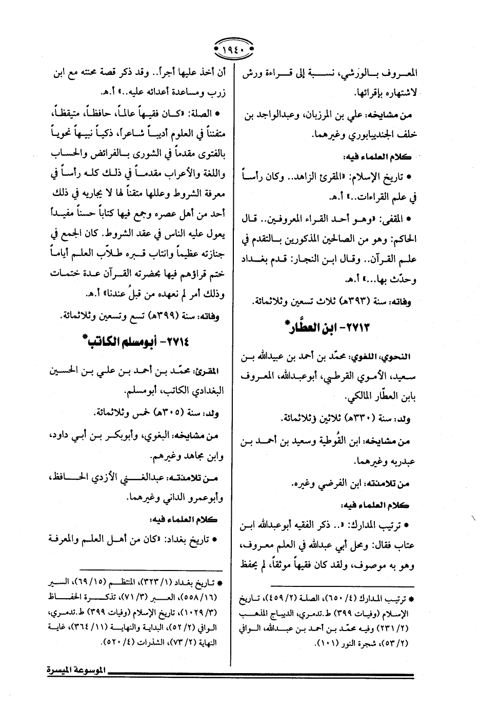 كتاب الموسوعة الميسرة في تراجم أئمة التفسير والإقراء والنحو واللغة (اسم الجزء: 2)