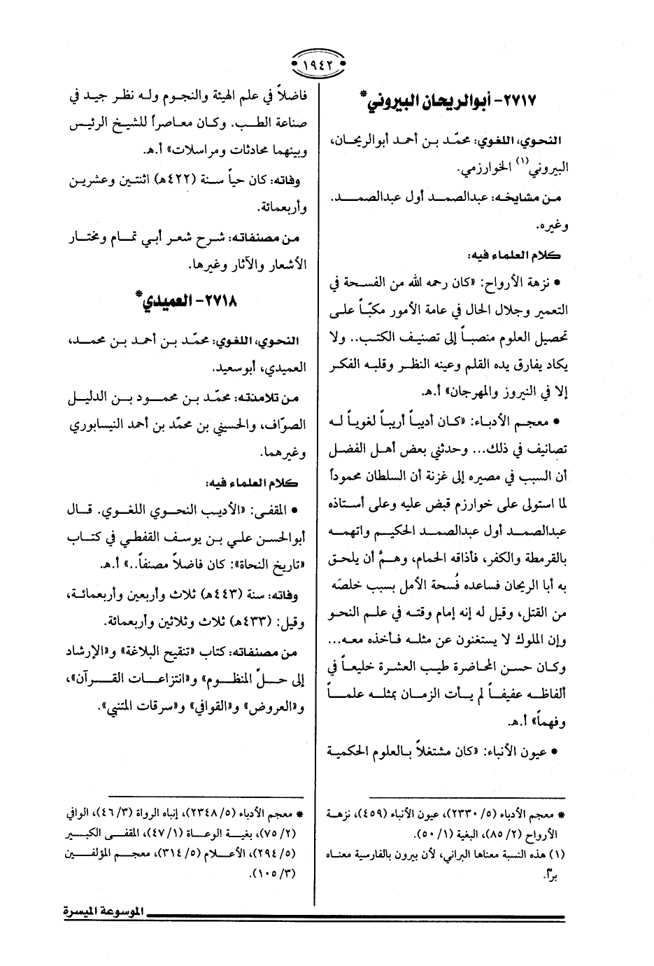 النحوي، اللغوي: محمّد بن أحمد أبو الريحان، البيروني (¬1) الخوارزمي.