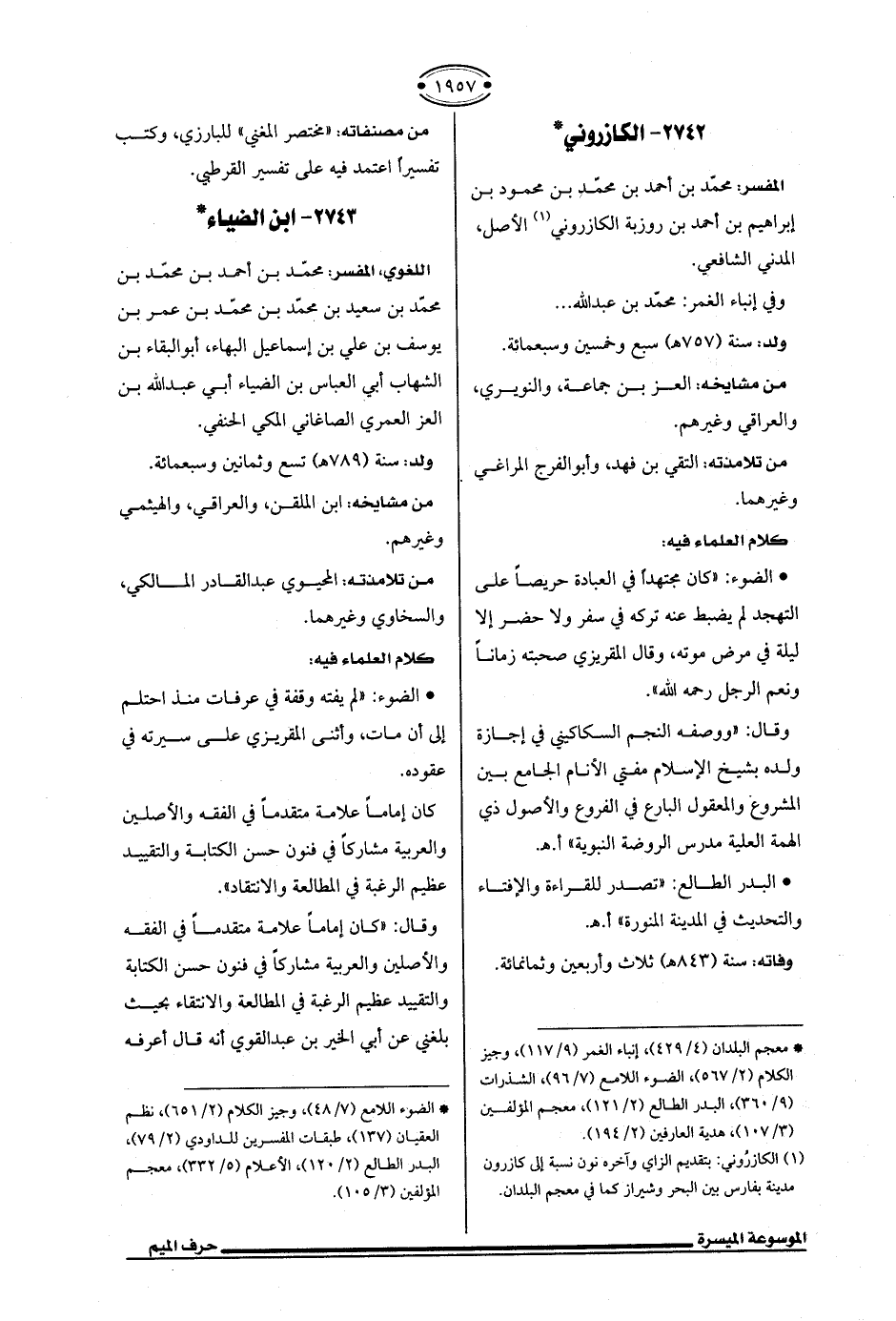 (¬1) الكازرُوني: بتقديم الزاي وآخره نون نسبة إلى كازرون مدينة بفارس بين البحر وشيراز كما في معجم البلدان.