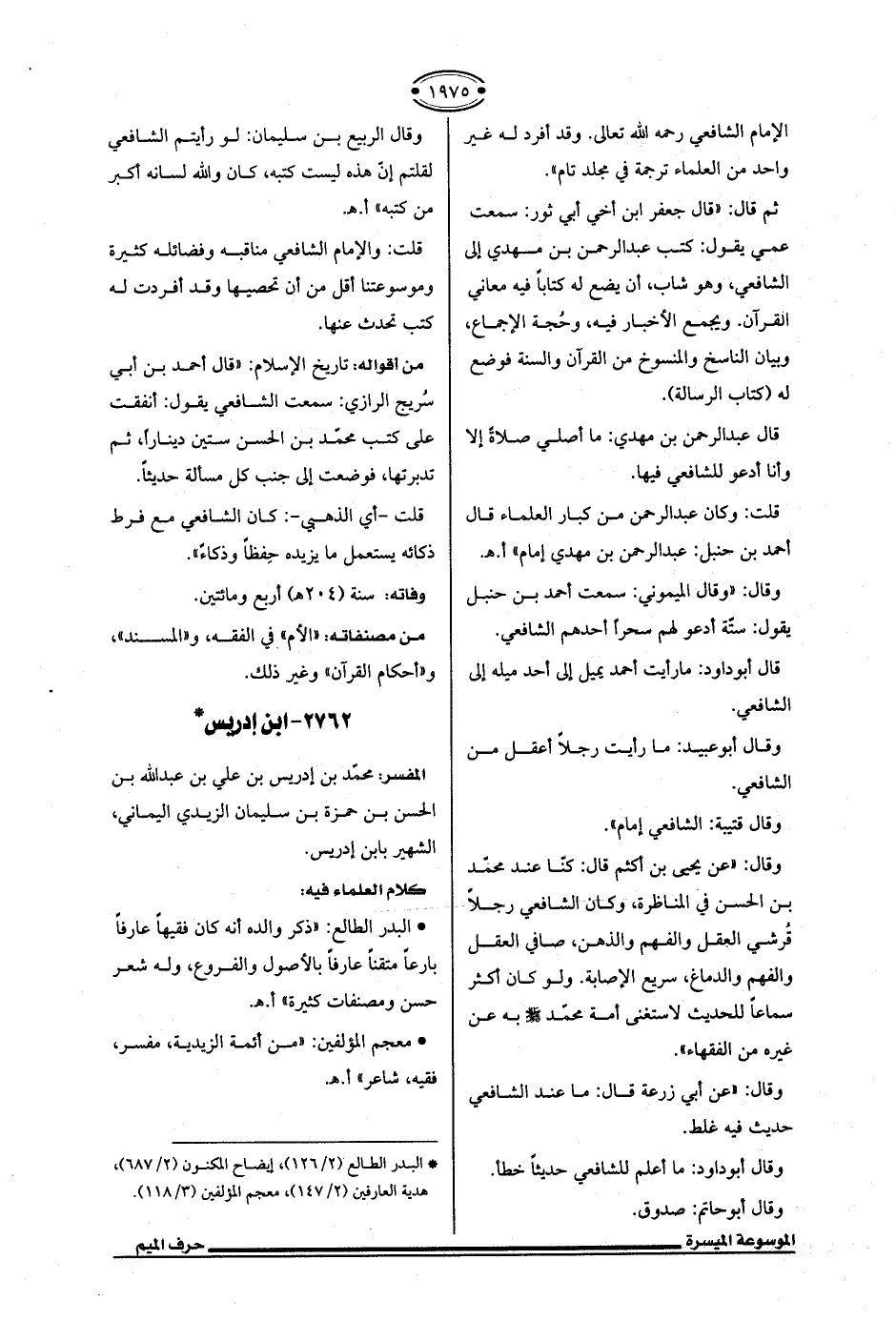 الإمام الشافعي رحمه الله تعالى. وقد أفرد له غير واحد من العلماء ترجمة في مجلد تام".