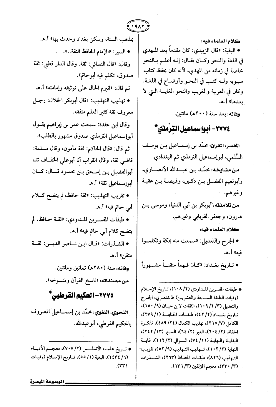 كتاب الموسوعة الميسرة في تراجم أئمة التفسير والإقراء والنحو واللغة (اسم الجزء: 2)